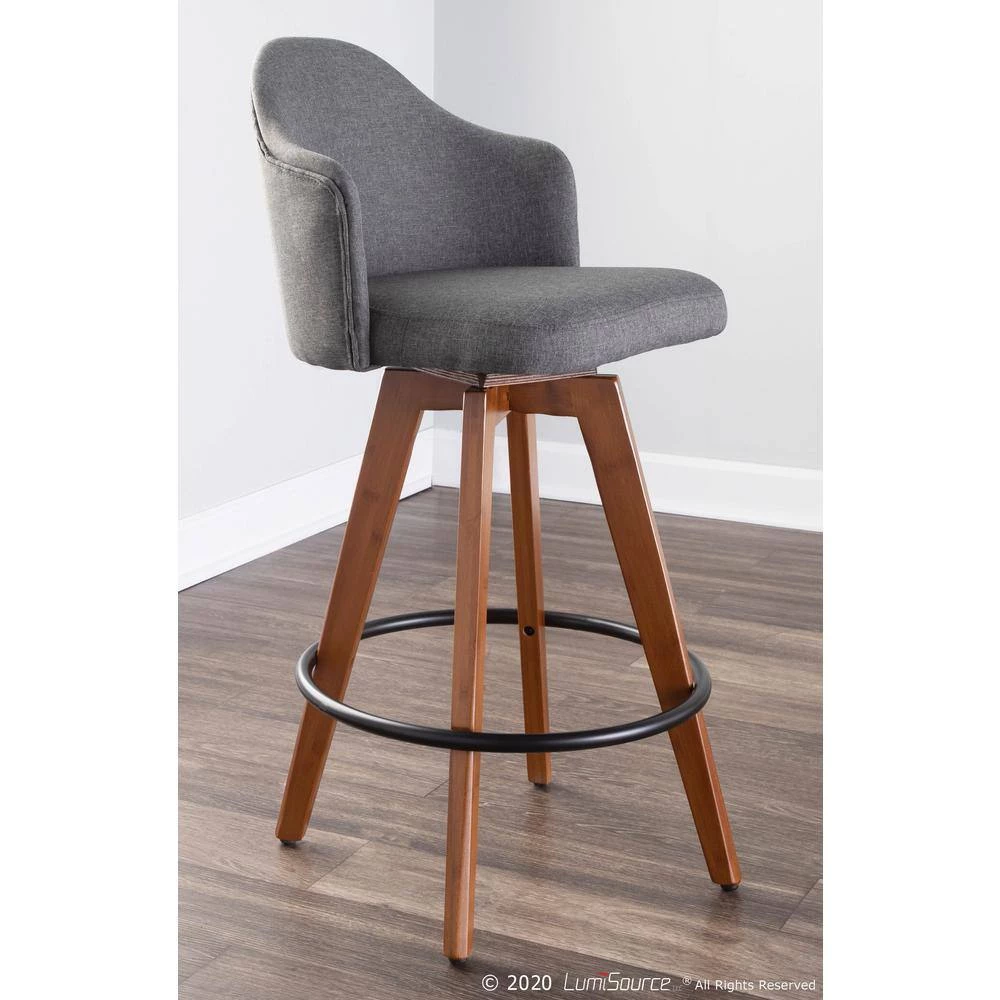 The Mid-Century charm of the Ahoy Counter Stool combines sturdy construction with aesthetic appeal. Sleek fabric upholstery is accented stylish wood legs. Available in a variety of color and pattern combinations.