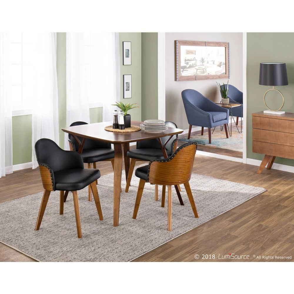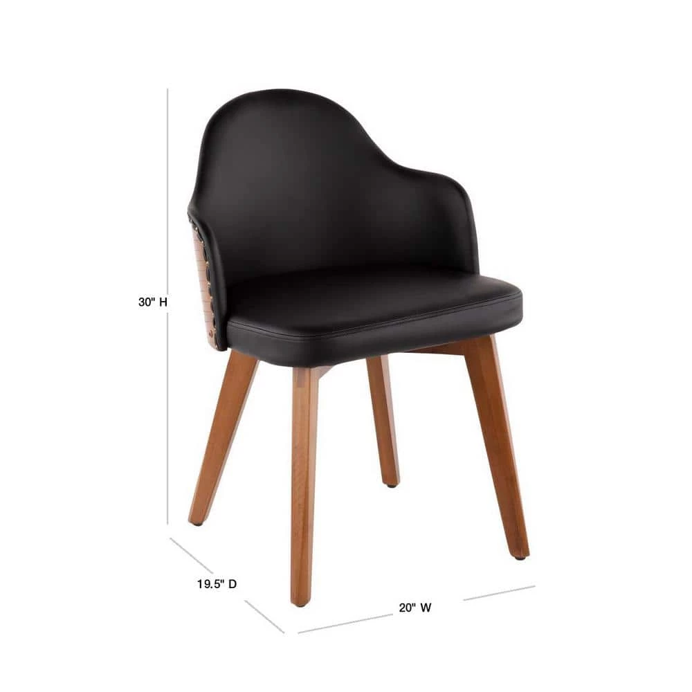 The Mid-Century charm of the Ahoy Chair combines sturdy construction with aesthetic appeal. A walnut wood frame is accented by faux leather upholstery and stylish tapered legs. Available in a variety of color combinations, the Ahoy Chair can be used as a dining chair, accent chair, or extra seating.