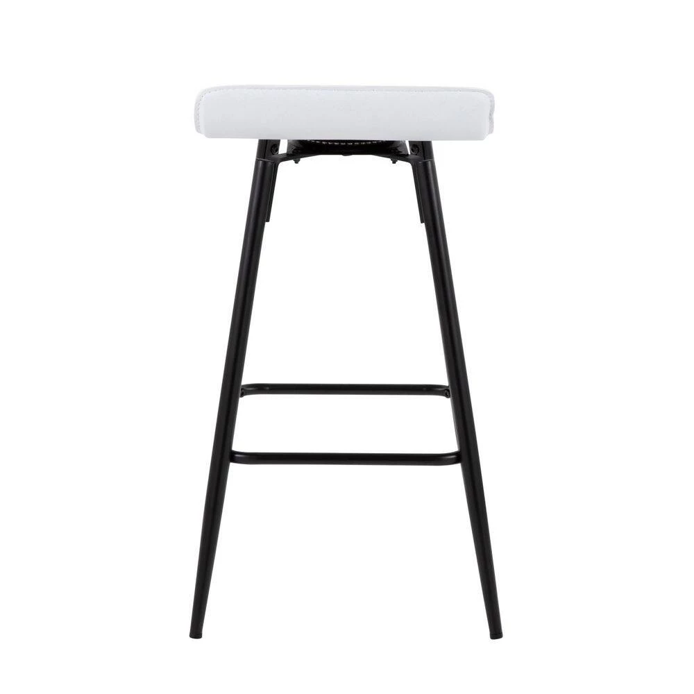 A gentle wave in the upholstered seat of the Ale Counter Stool by Lumisource creates a welcoming allure. Featuring a black fixed height base with square metal footrest, the Ale Counter Stool is the perfect match for any kitchen or bar area, available in a variety of upholstery options.