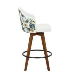 Ahoy Upholstered 37 in. White Fabric and Floral Print Counter Height Bar Stool with Black Round Footrest (Set of 2) by Lumisource