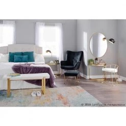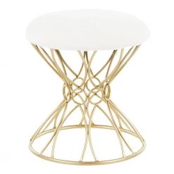 Jasmine White Plush Fabric and Gold Vanity Stool by Lumisource