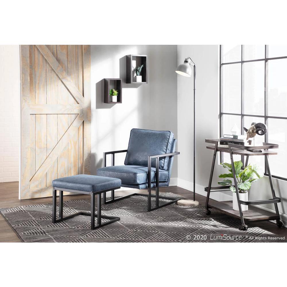Sharp and clean, the mixed material design of the Lumisource Lounge and Ottoman is a great addition to any industrial modern aesthetic. Featuring an angular metal frame, a plush padded seat, and upholstered in a comfortable faux leather or fabric, this set is perfect for your living, office or bedroom area. Available in a variety of colors, choose the one that fits your space the best.