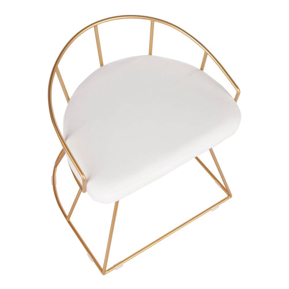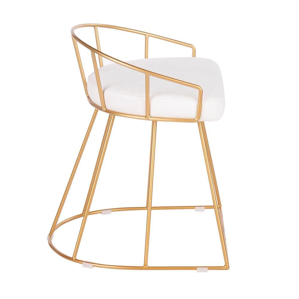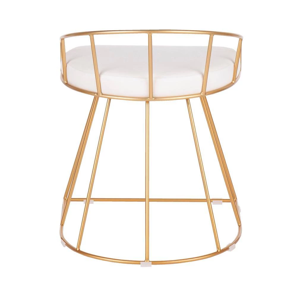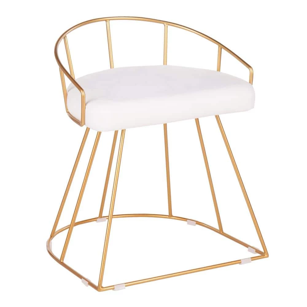 Opulent and confidently contemporary – that’s the Canary Vanity Stool by LumiSource. Featuring a captivating cage-like gold tone metal base with footrest, a subtle curved backrest, and an elegant upholstered seat available in various modern colors. Definitely a bold touch of fancy for your seating needs.