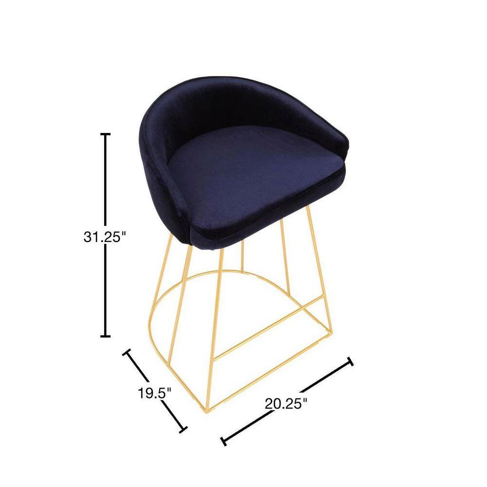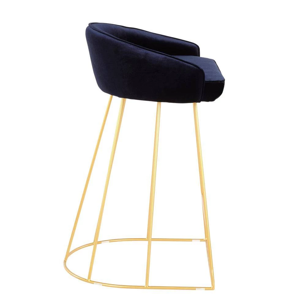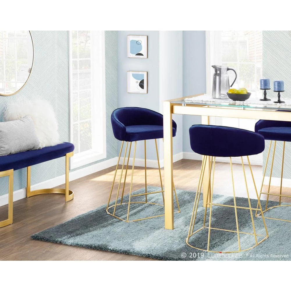 Opulent and confidently contemporary – that’s the Canary Upholstered Counter Stool by LumiSource. Features a captivating cage-like gold tone metal base with footrest, subtle curved backrest, and an elegant upholstered seat available in various modern colors. Definitely a bold touch of fancy for your seating needs.