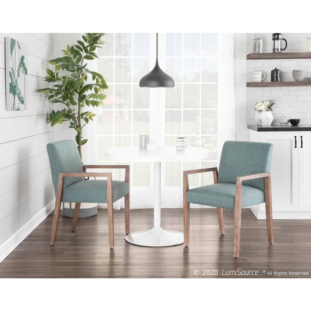 With elegant lines and sleek upholstery, the Carmen Arm Chair by Lumisource is comfortable and stylish. This set provides you with 2-armchairs, each with a textured whitewashed wood frame and modern fabric upholstery. A foam-padded seat and backrest make the Carmen Arm Chair extremely comfortable; you’ll love sitting long after dinner, talking, and enjoying good company.