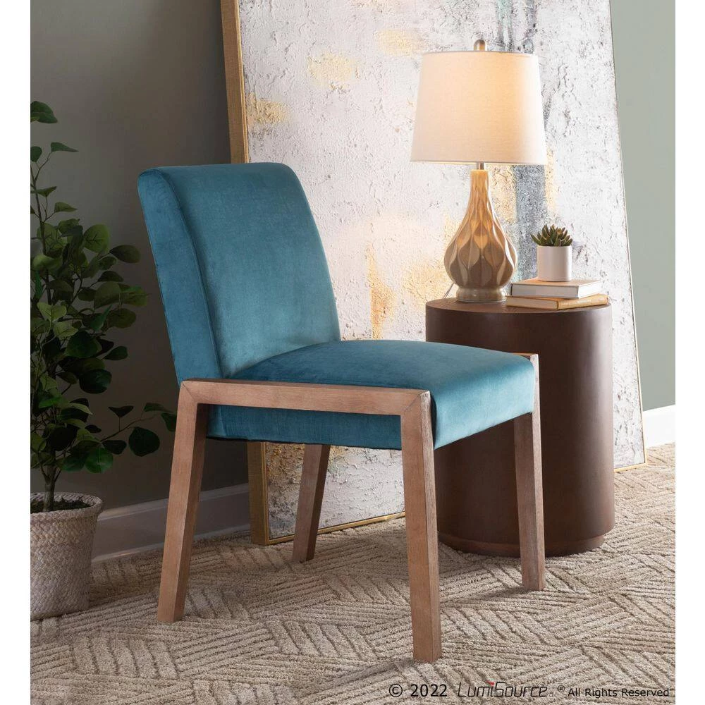 With elegant lines and sleek upholstery, the Carmen Chair by Lumisource is comfortable and stylish, this set provides you with 2 chairs, each with a textured wood frame and modern fabric upholstery, a foam-padded seat and backrest make the Carmen Chair extremely comfortable; you’ll love sitting long after dinner, talking and enjoying good company, available in black or white washed wood and a variety of luxurious upholstery colors.