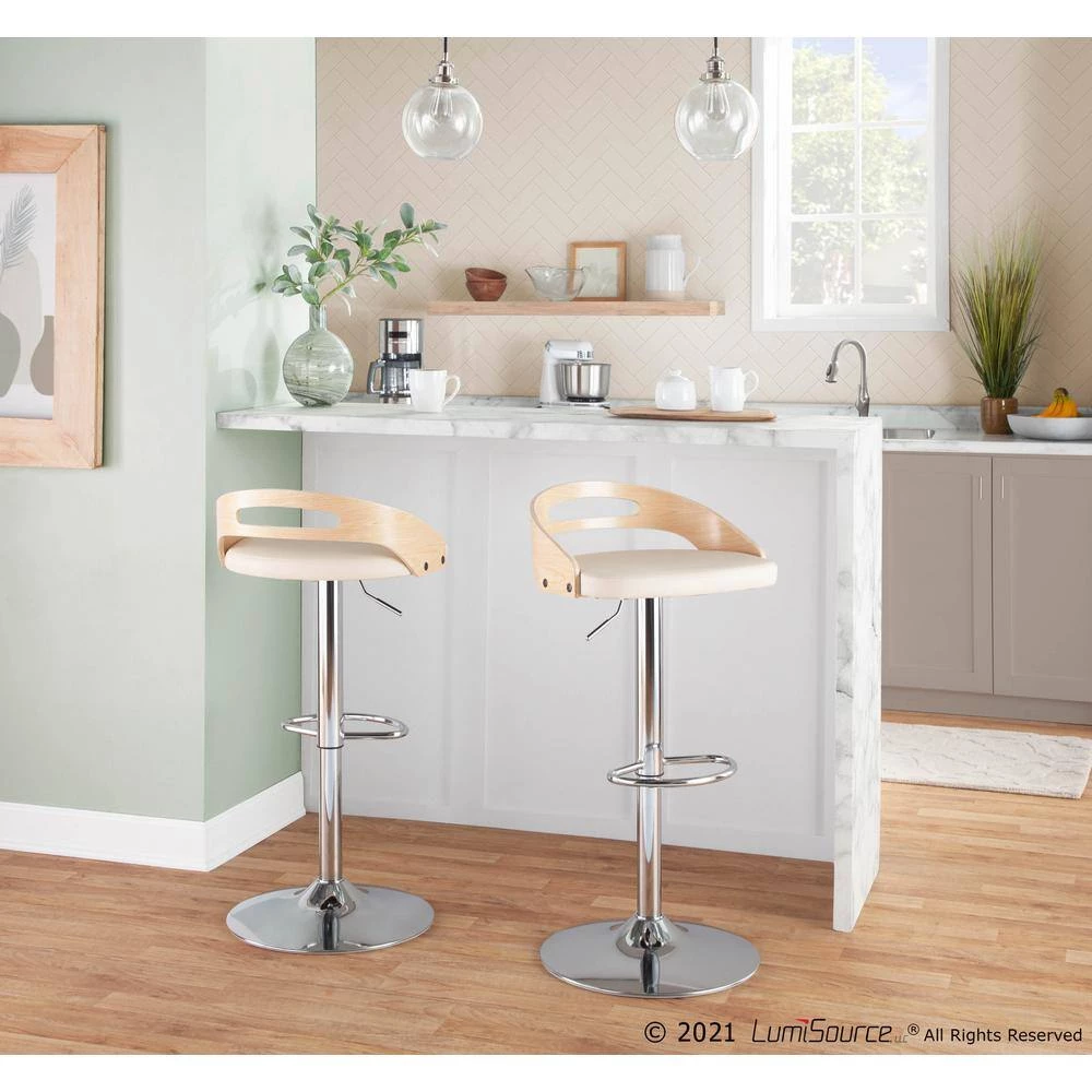 The Lumisource Cassis Barstool makes a strong statement with a modern, low-profile bent wood back which curves into a wide, generous seat. Form and function unite with easy-to-clean faux leather seating and a convenient footrest resulting in a stylish updated look. Includes 1 bar stool.