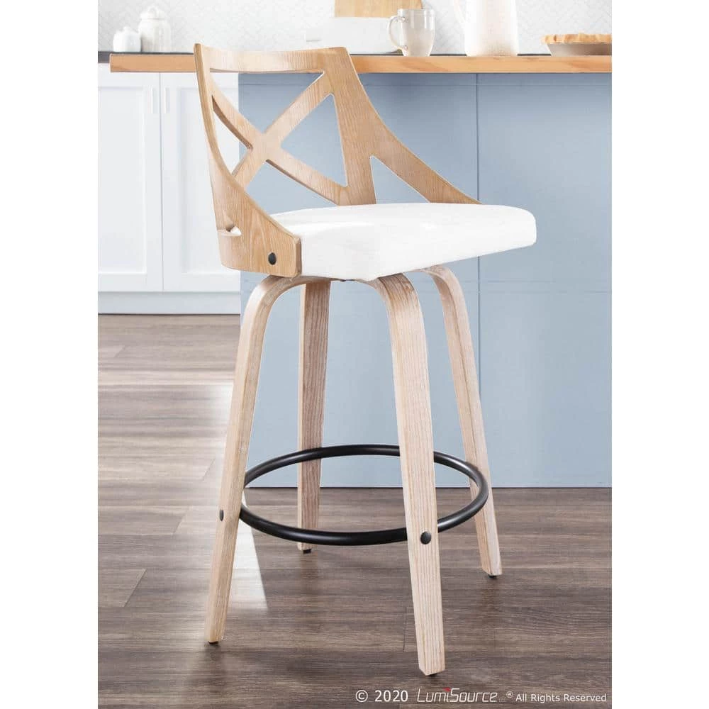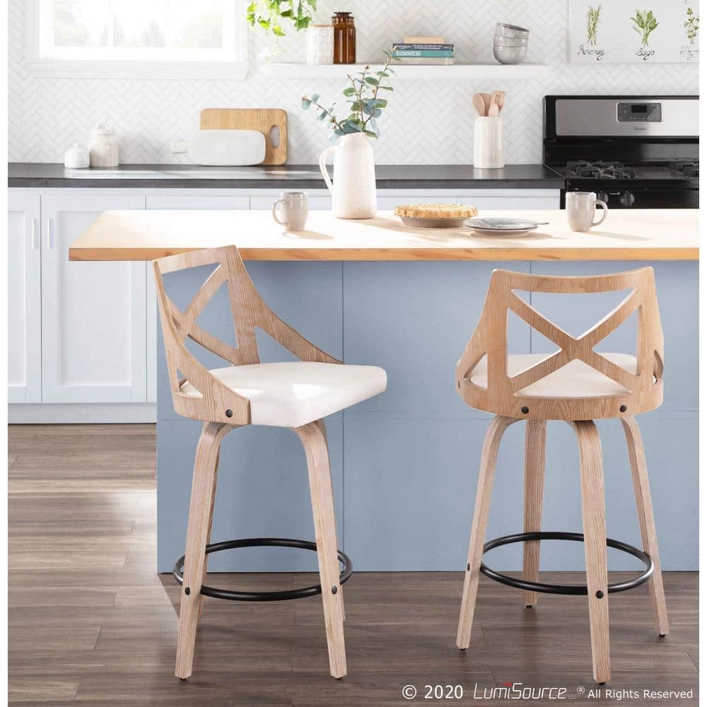 Spruce up your dining area with the Charlotte Counter Stool by LumiSource. With elegant styling, the backrest shows off an X-shaped accent. Featuring white washed wood, fabric upholstery, and a swivel seat, the Charlotte Counter Stool beautifully straddles the line between traditional and farmhouse styles.