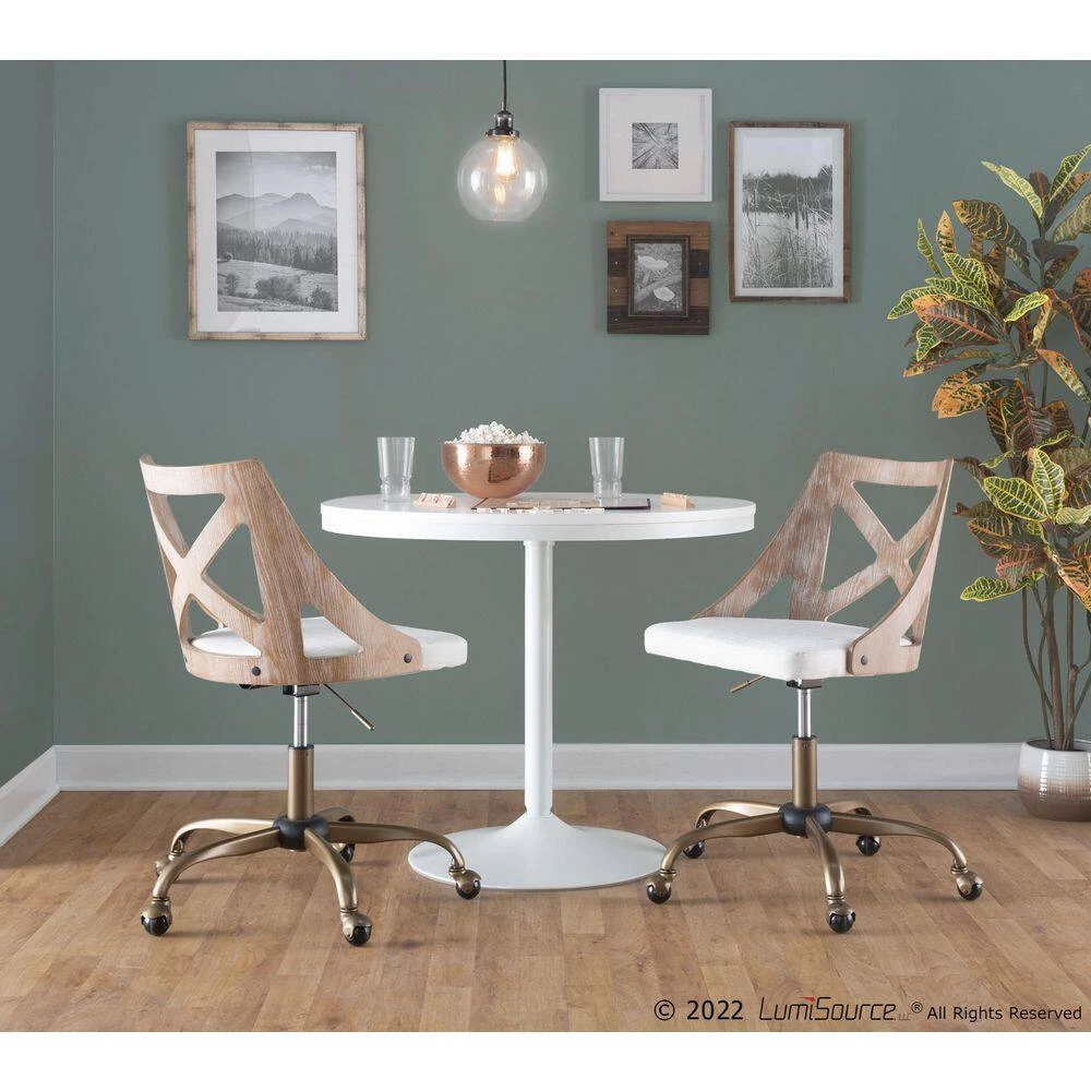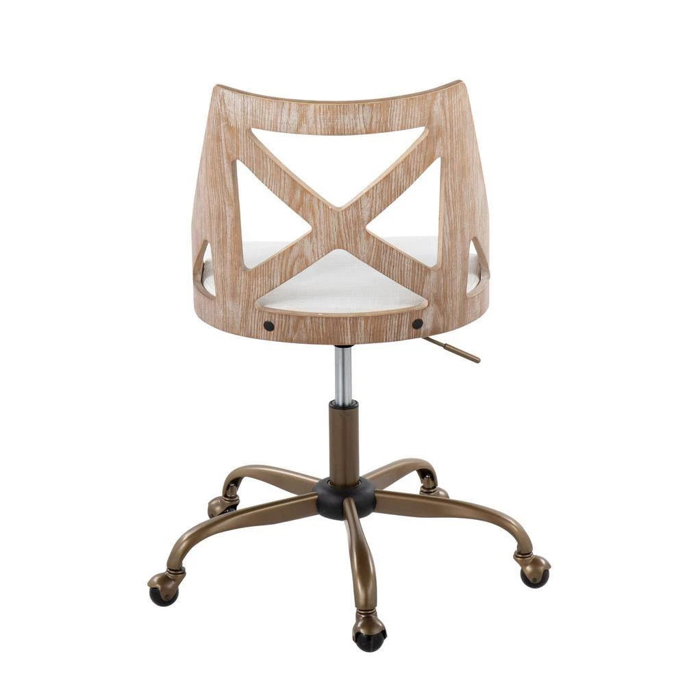 Spruce up your home office with the Charlotte Task Chair by LumiSource. With elegant styling, the backrest shows off an X-shaped accent. Featuring beautiful fabric upholstery, 360-degree swivel, and antique copper base, the Charlotte Task Chair beautifully straddles the line between traditional and farmhouse styles.