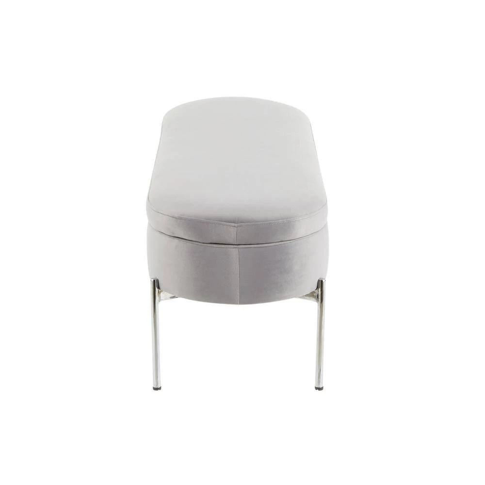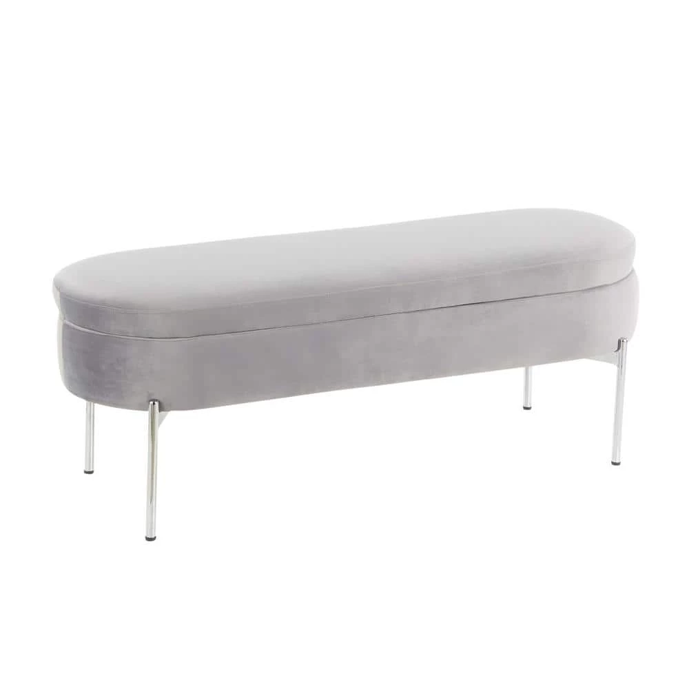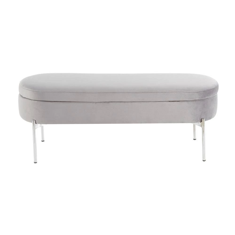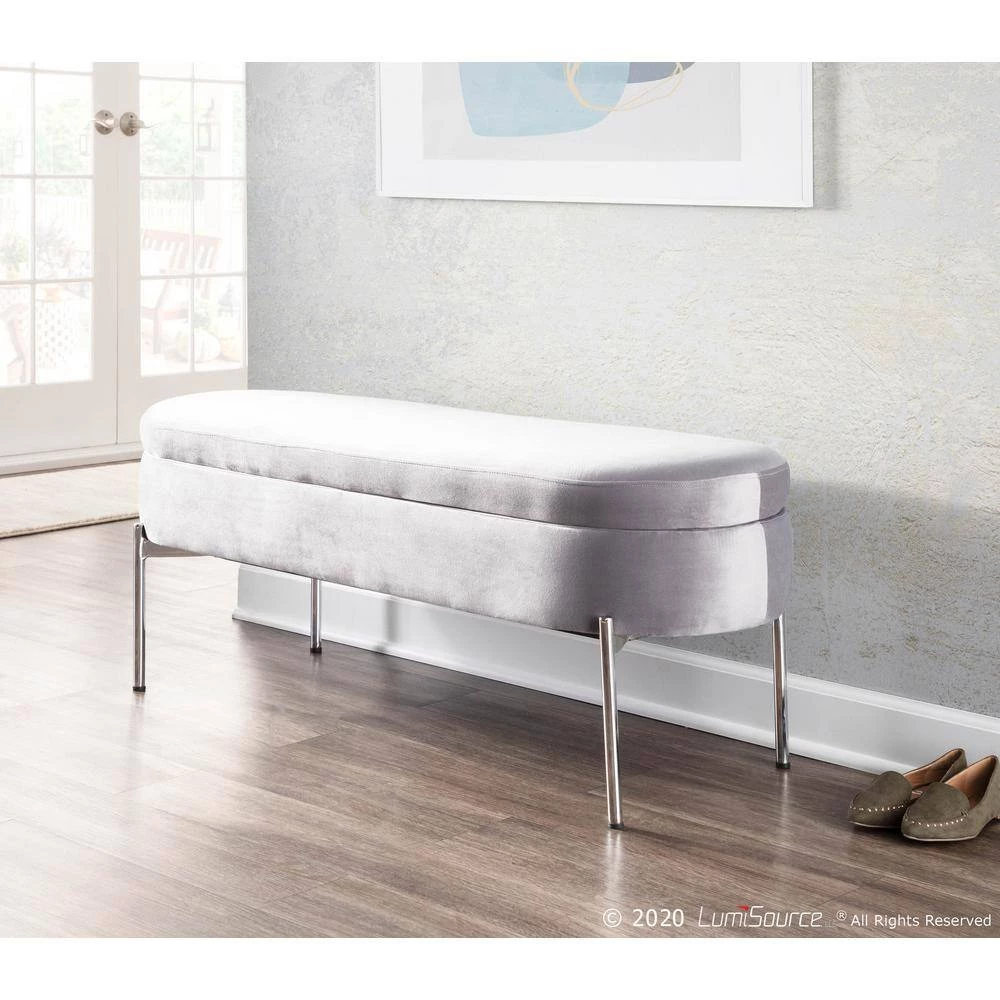 The Chloe Storage Bench by Lumisource provides convenient storage along with a stylish look. Perfect for extra seating, an entryway, or at the foot of a bed, the Chloe Storage Bench features velvet upholstery accented by a luminous chrome metal base. Open the flip-top lid to find a roomy storage area where you can conveniently hide magazines, remote controls, and anything else you want to keep out of sight. Available in a variety of colors, choose the one that fits your glam area the best.