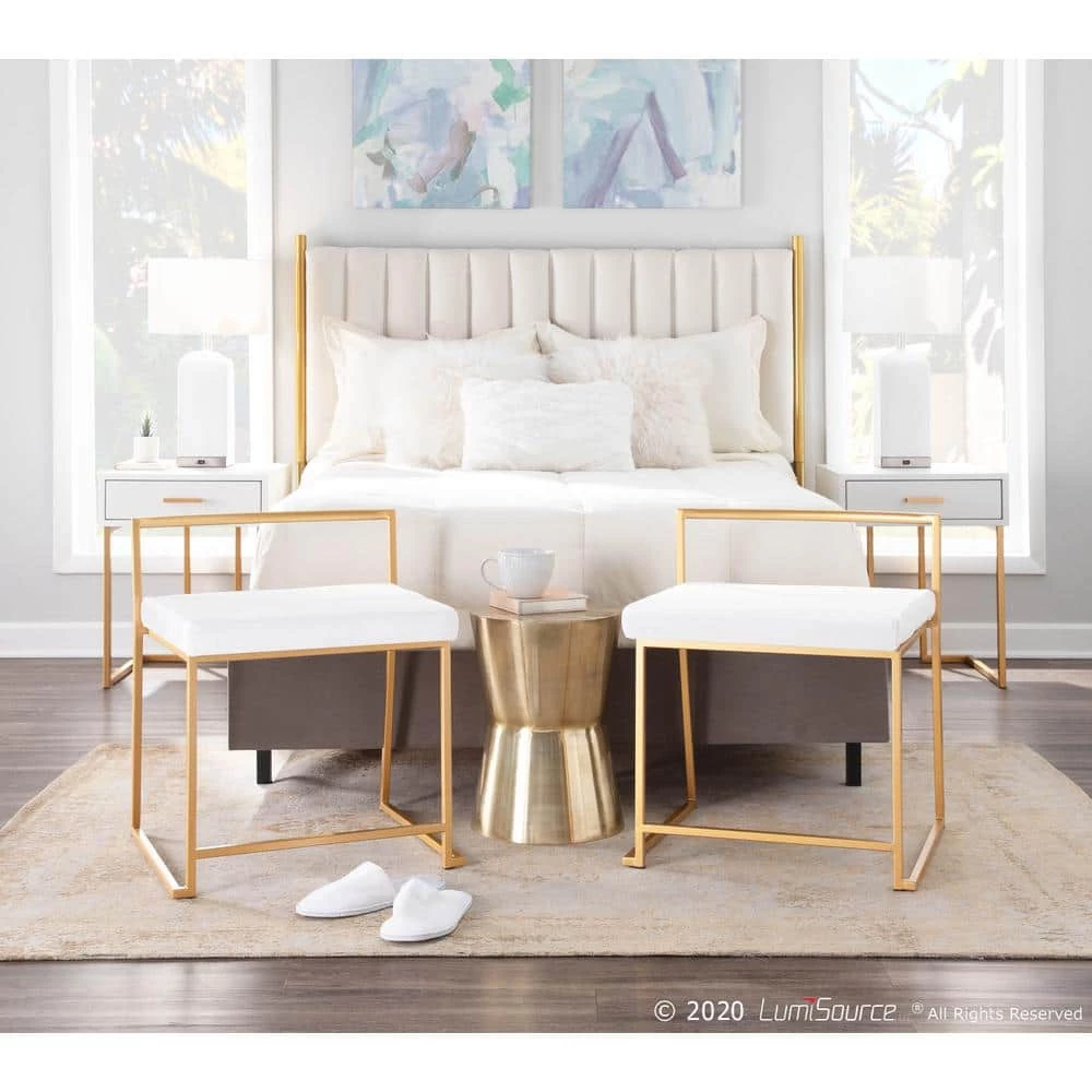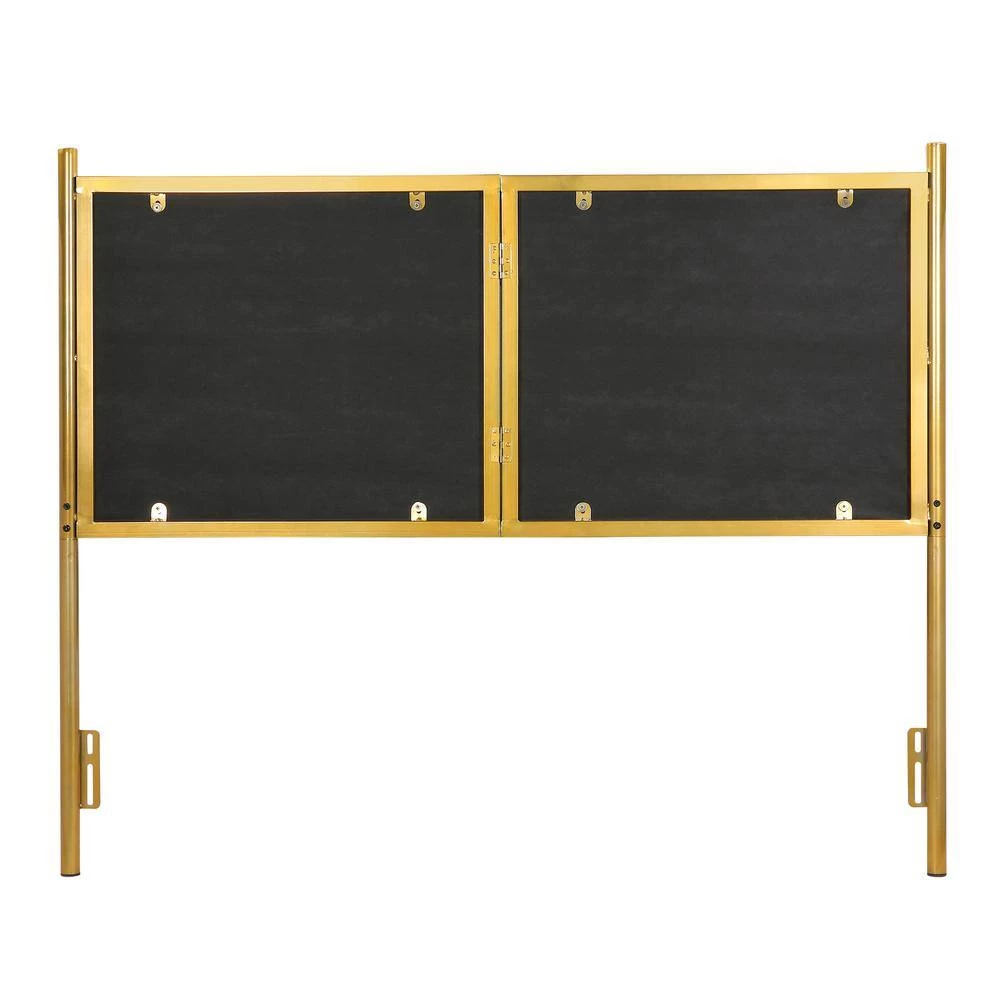 Add a dash of glam to your bedroom with the Chloe Headboard. Plush padding and sumptuous upholstery are accented by a luminous gold metal frame. Available in a variety of colors, choose the one that fits your area the best.