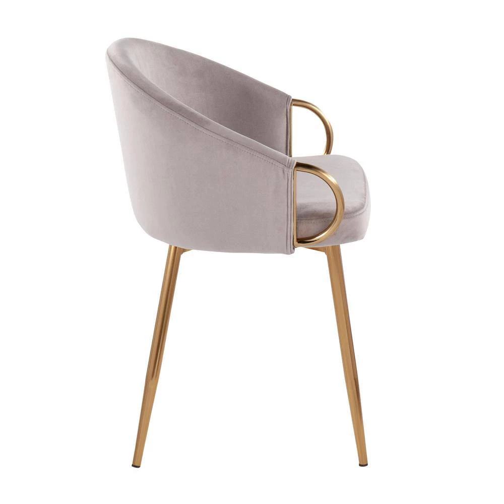 Chic modern style shines bright with the unique design of the Claire Chair. With a rounded low backrest, stylish gold armrests and a gold metal frame, it’s the perfect piece for your contemporary dining area. The Claire Chair is upholstered in lush velvet and available in various bold colors.