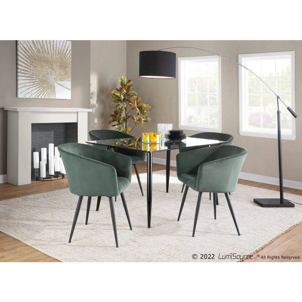 A perfect option for smaller spaces, the LumiSource Corazza Accent Chair has a low back and armrests for a streamlined design. Upholstered in luxurious faux leather or corduroy fabric and tapered black metal legs, the Corazza Accent Chair has a straightforward yet distinguished design that will add contemporary modern flair to any area. Available in various colors, choose the one that ties in with your decor.