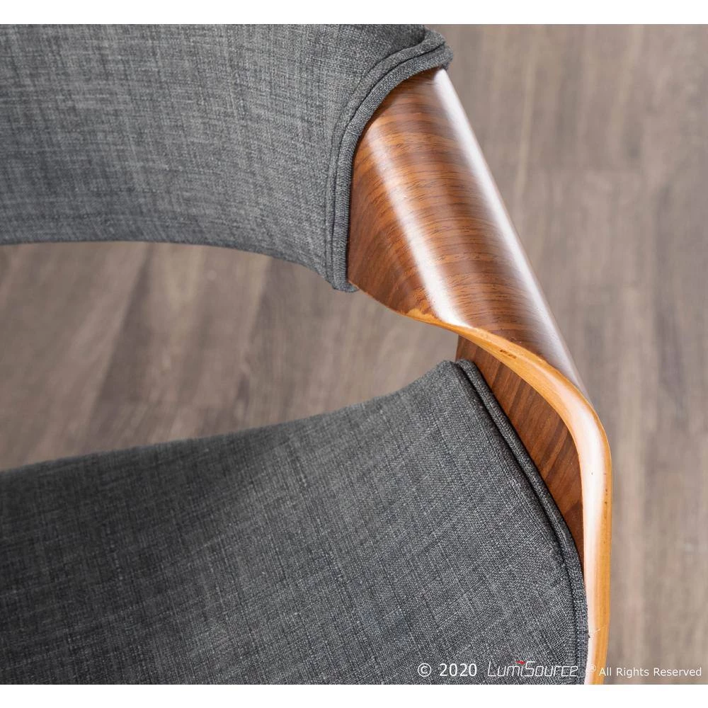 With a curvaceous dose of Mid-Century style, this unique design will look great at your bar area. Featuring a walnut finished stationary wood frame, luxurious woven fabric upholstery, swivel seat, and stylish armrests. The Curvini is available in various color options, choose the color that fits your space the best.