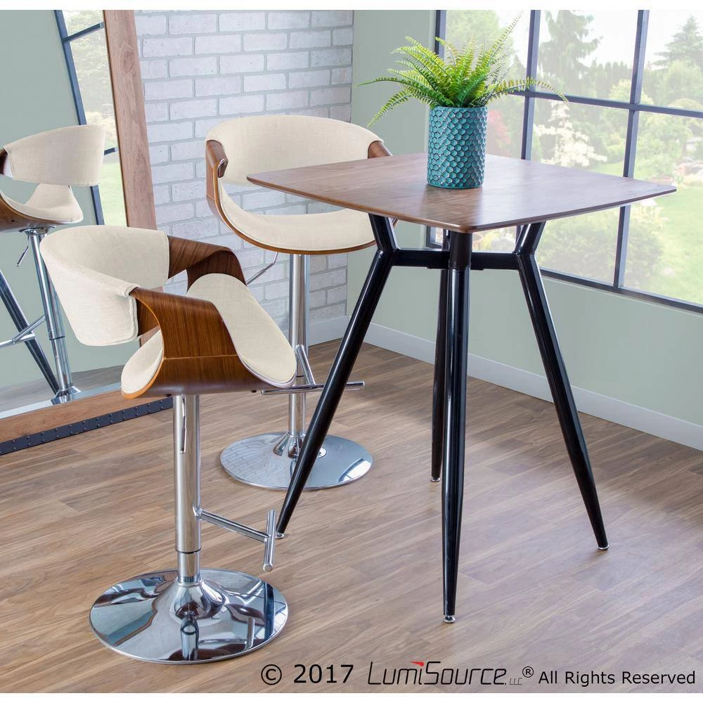 Freshen up any living area with the Lumisource Curvo Bar Stool. This stool is made with a metal frame, so it can stand up to frequent use. It has a full back, giving it the comfortable feel of a dining chair yet still maintaining the look of a stool. Featuring a mid-century modern style, it showcases the perfect balance between form and function with its sleek, minimalist look. It features a pedestal, so it can swivel 360 degrees for ease of use and accessibility. This stool has a swivel design, so you can easily interact with other people in the room without moving your chair. It has a foot rest, providing you with a place to put your feet while sitting.