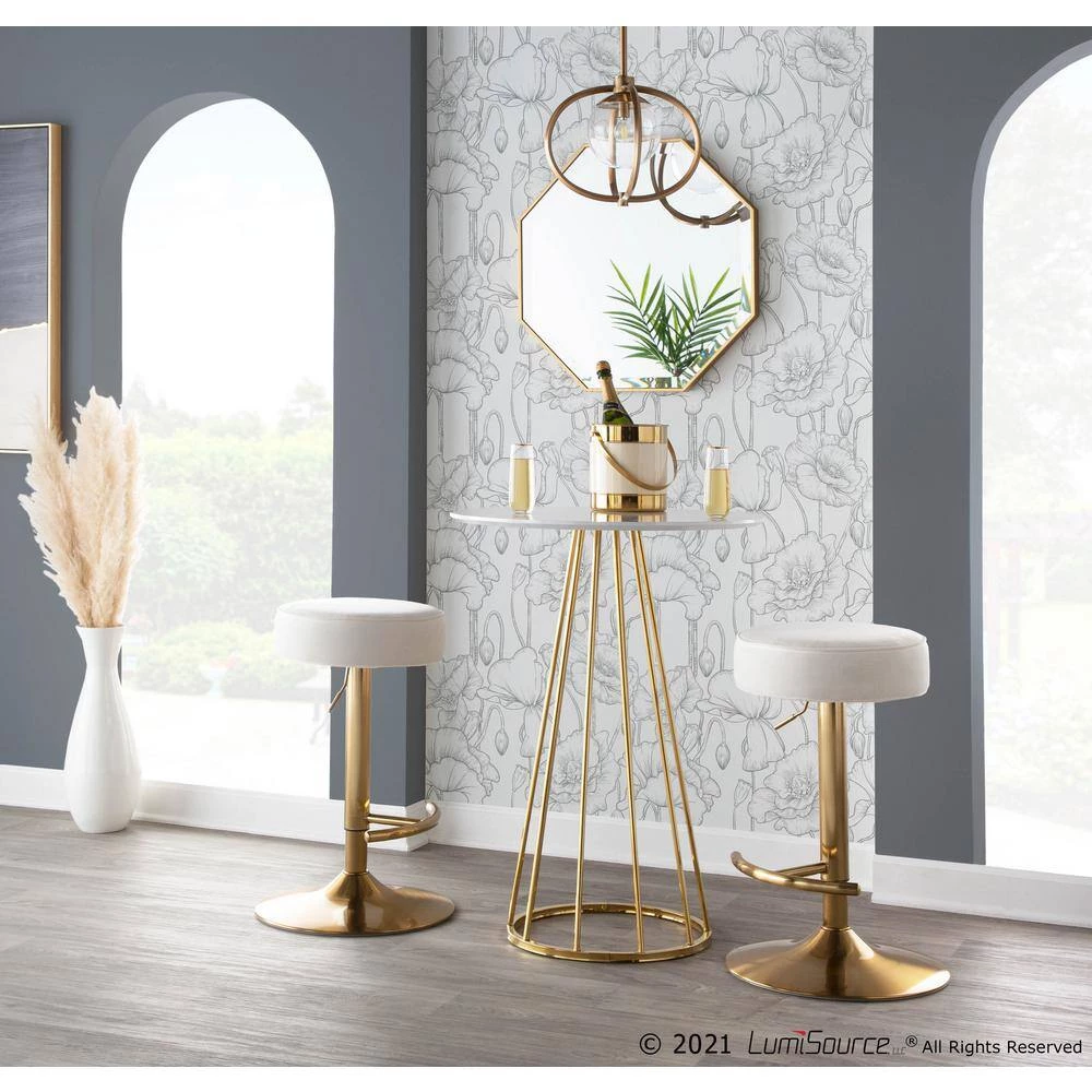 Add chic style to your bar area with the Velvet Dot Bar Stool by Lumisource. A perfect combination of glam and modern styling, this bar stool showcases an upholstered seat, built-in footrest, and 360° swivel. Available in a variety of velvet upholstery options, choose the one that fits your space best.