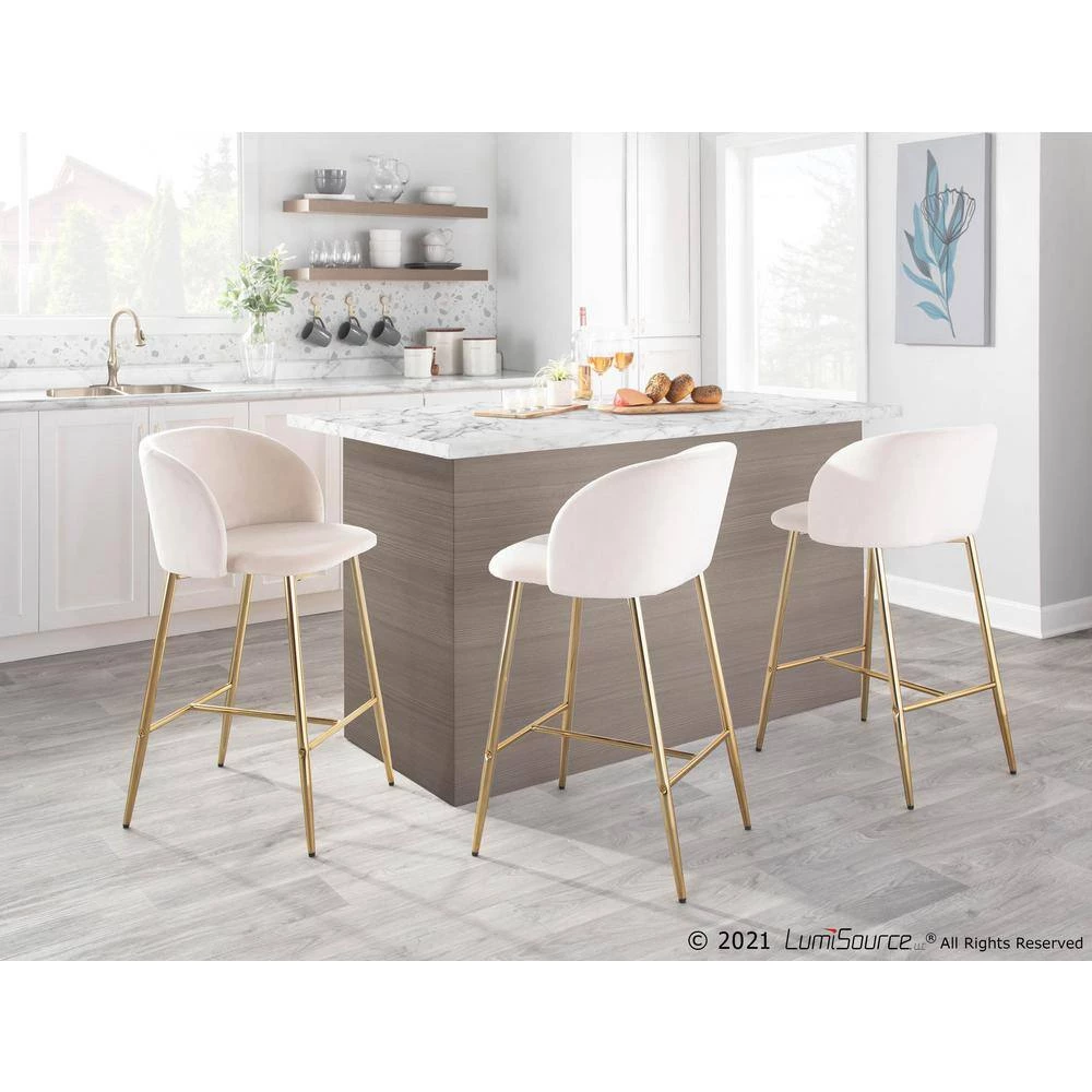 Surround your counter area or dining table with the beauty of the Fran Counter Stool by LumiSource. Featuring a sophisticated velvet upholstery that will tie in perfectly with your contemporary decor, this ultra comfortable padded bucket seat is complemented by tapered legs with a gold finish. Available in a variety of color combinations, choose the color that ties in with your decor.