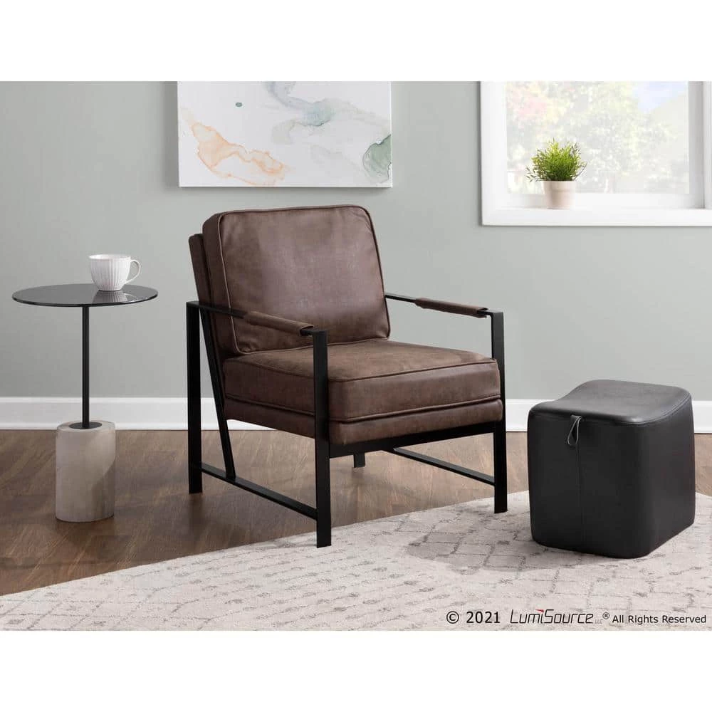 With its unique metal silhouette and sleek upholstery, the Franklin Padded Arm Chair by LumiSource can’t help but stand out. A great seating option for your living space, den, or bedroom. Design details include a metal geometrical frame, faux leather upholstery, and a plush padded seat and backrest. A perfect fit for any decor style and your home.