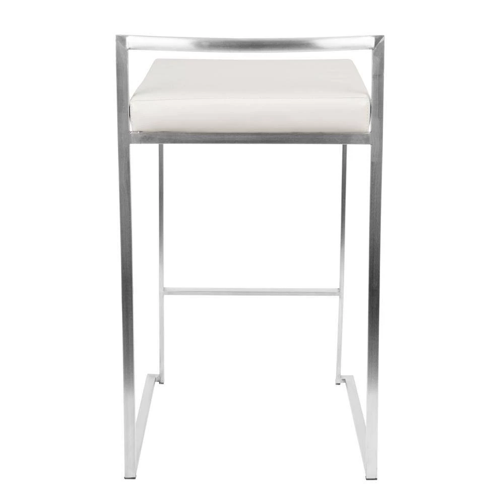 The simple elegance of the Fuji belies its astonishing comfort. Lightweight thin lines that create the simplistic frame and backrest support a thick padded seat cushion. A stackable design for easy storage makes this a great stool for entertaining. With its simple stylishness, the Fuji is sure to match any decor. Available in many color combinations, choose the look that best fits your dining space.