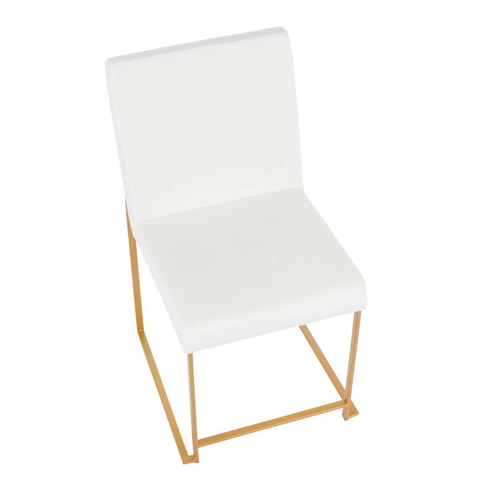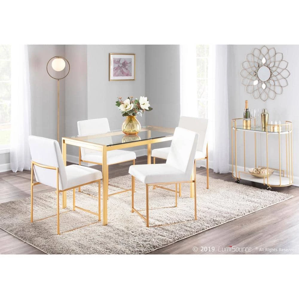 Modern elegance at its finest, the fuji high back dining chair features an extra-wide (and extra comfortable) upholstered seat, high padded backrest, and stylish gold metal frame. The perfect dining chair, the fuji is multi-functional and can be used as extra seating in a sitting room or as a stylish office chair. Pair with the fuji dinette table for a complete look.