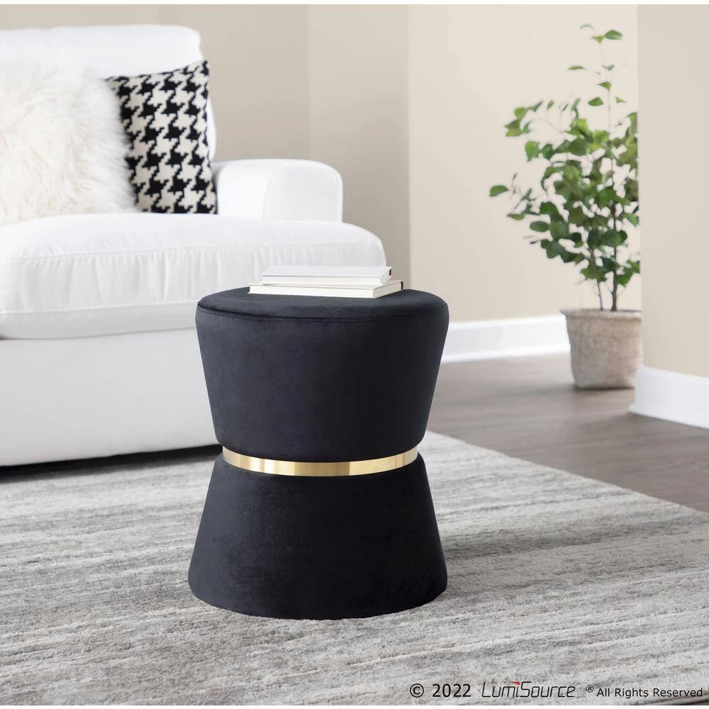 Add a pop of glamour to your home with the sleek design of the Gemma Ottoman by LumiSource. Featuring a luxuriously soft cushioned velvet upholstery and chic cinched gold metal band. Available in a variety of upholstery colors, choose the one that fits your space the best.