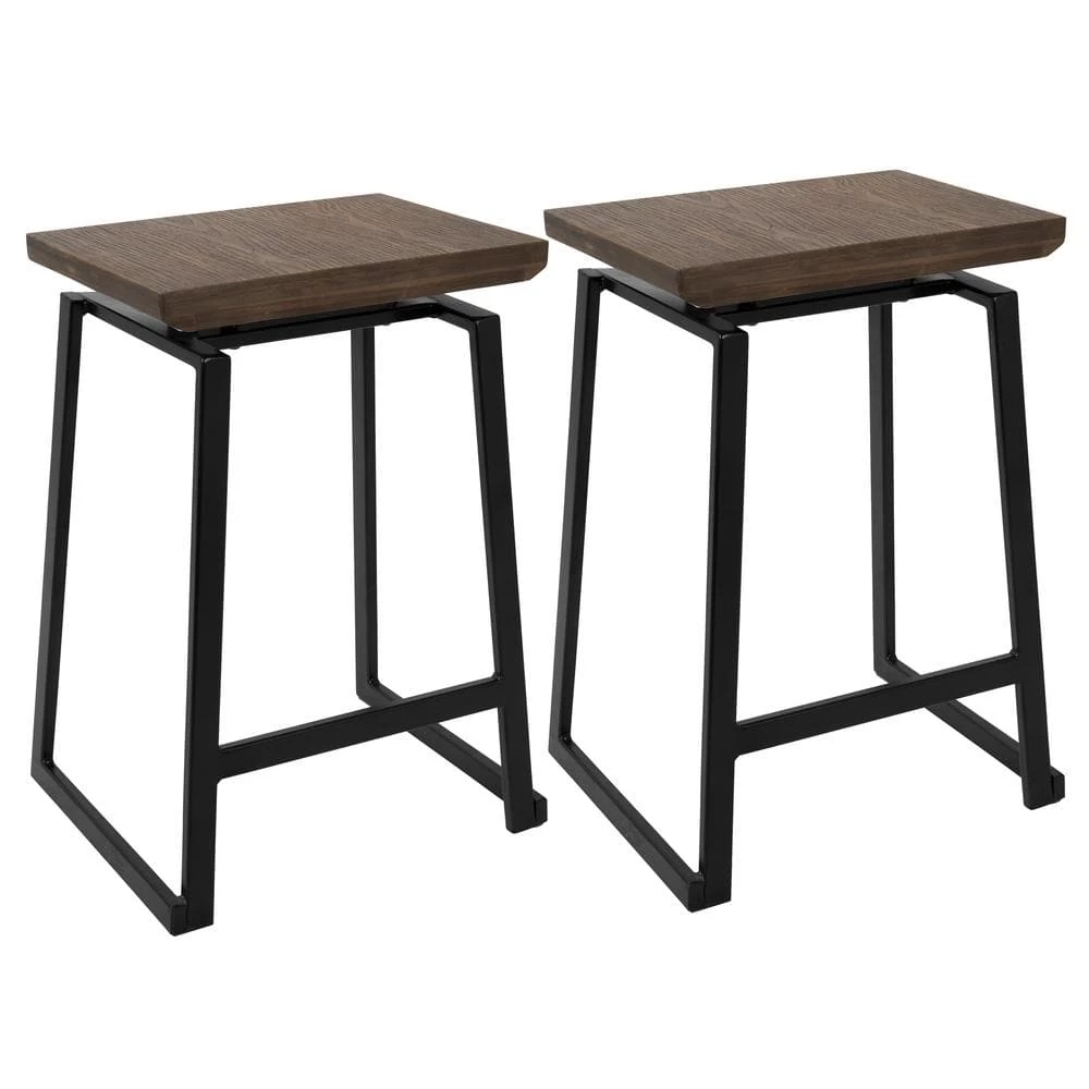 Improve your kitchen counter seating area with the Lumisource Geo Bar Stool. This stool features an industrial style, which will instantly update your kitchen seating area. It has a backless design, making it easy to tuck away when not in use. Designed from metal, its frame can tolerate frequent use, making it excellent for any home. This stool features a wooden seat, which is easy to maintain and creates a homey, visually appealing look. It has a foot rest, so you have a place to comfortably put your feet while sitting.