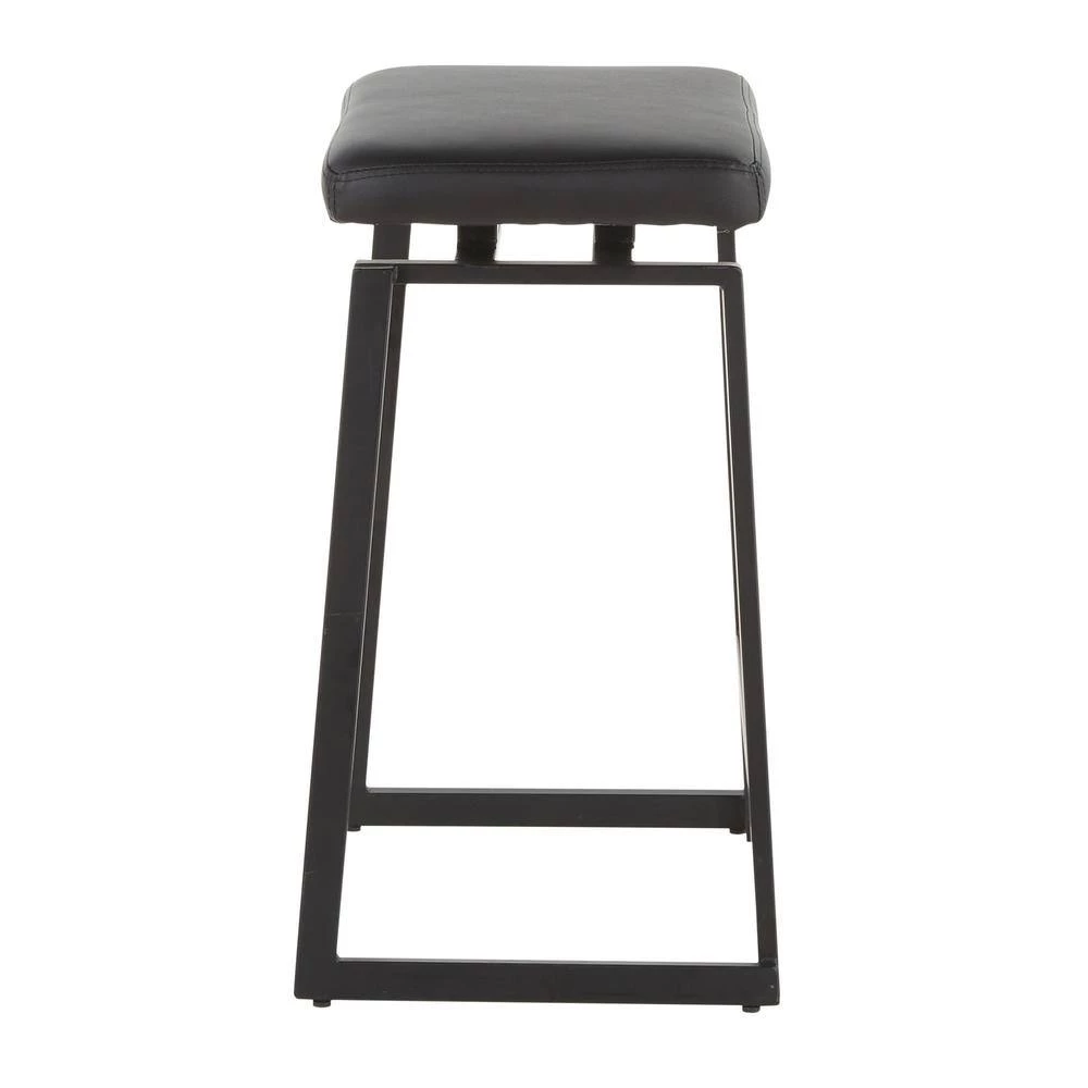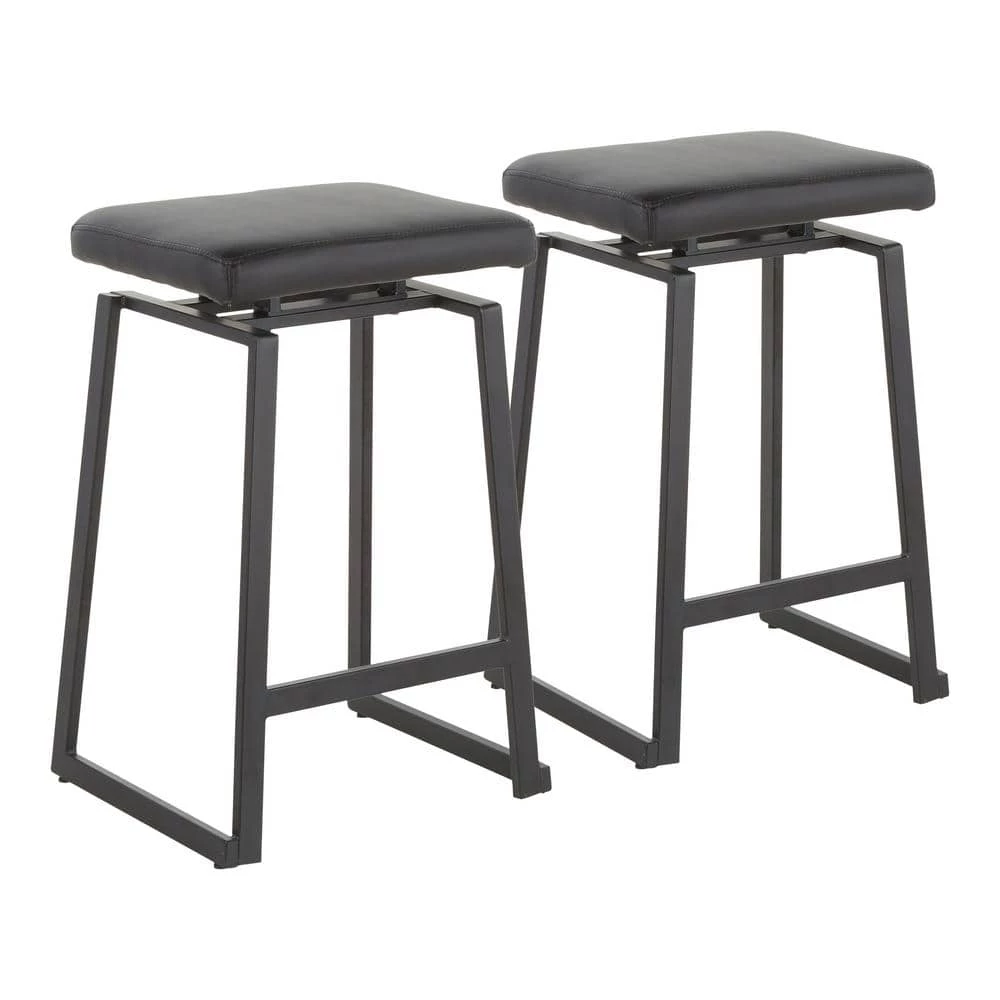 The industrial design of the Geo Counter Stool by LumiSource is sure to make a statement in your home. This unique counter stool features a geometric metal frame with a faux leather seat. Pair with the Geo Counter Table for the ultimate industrial look.