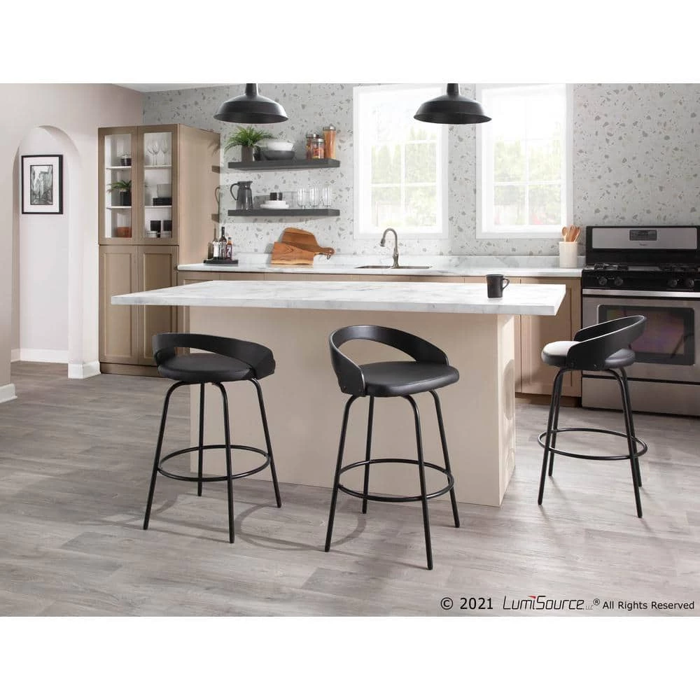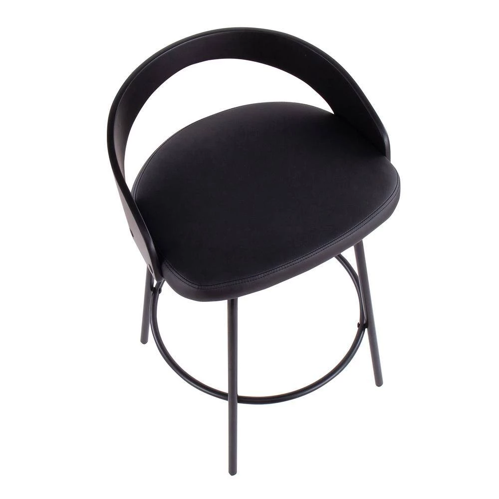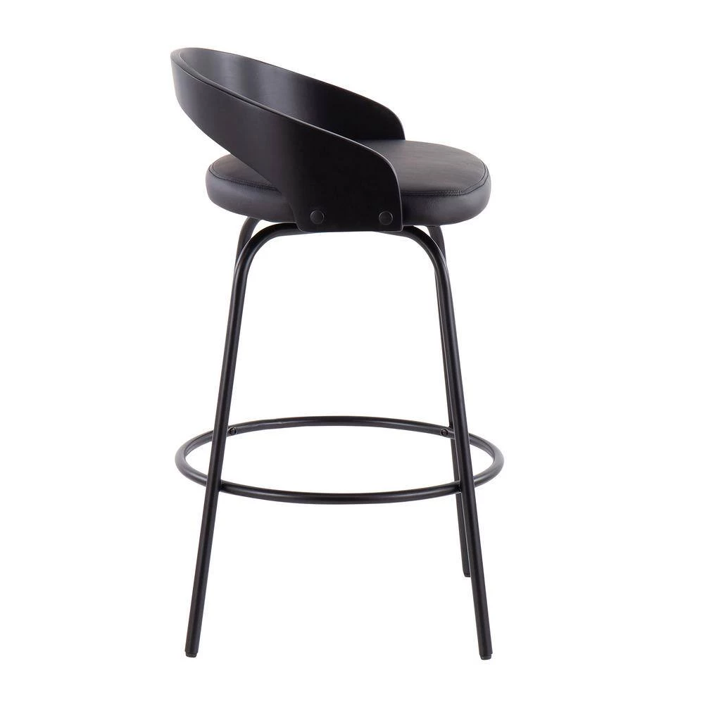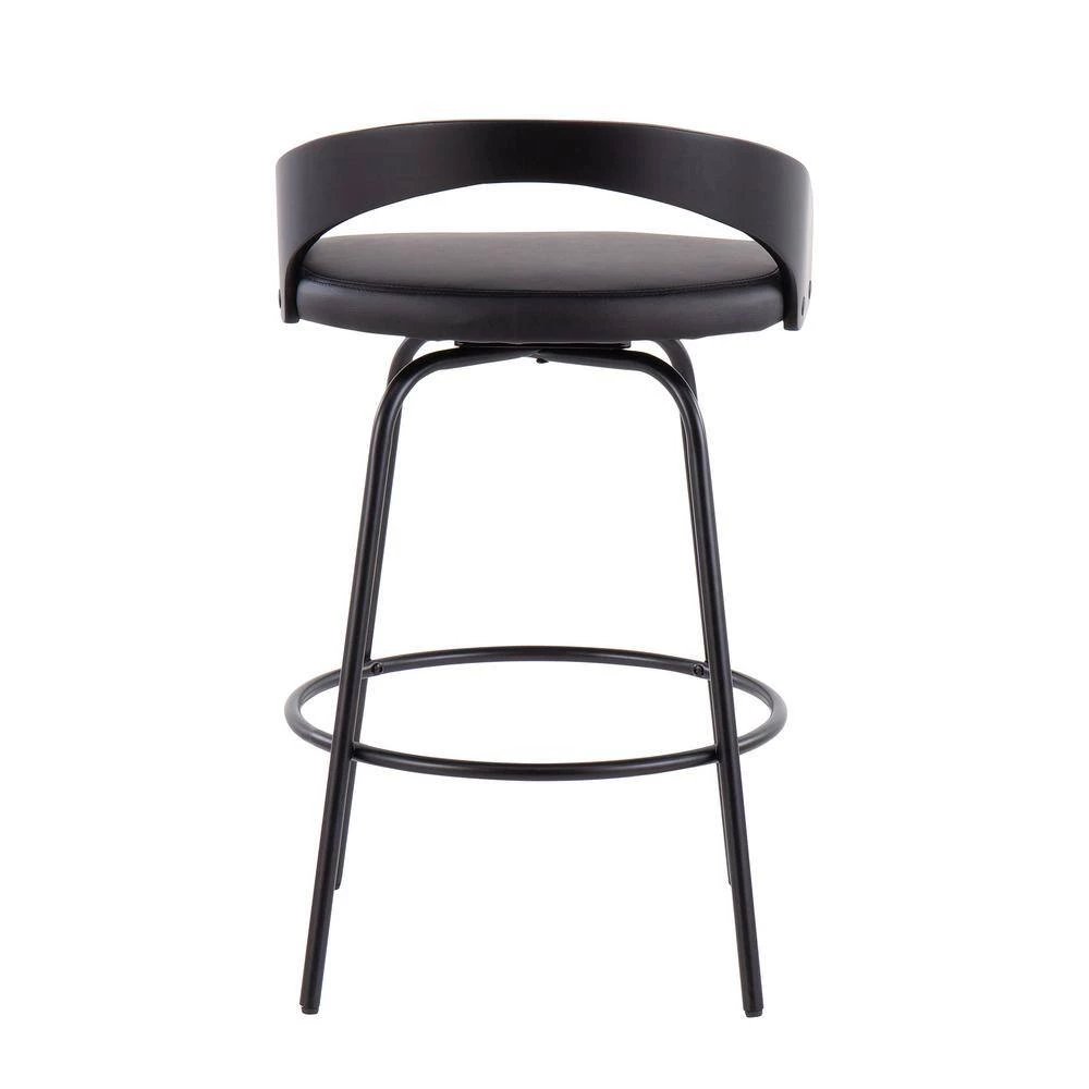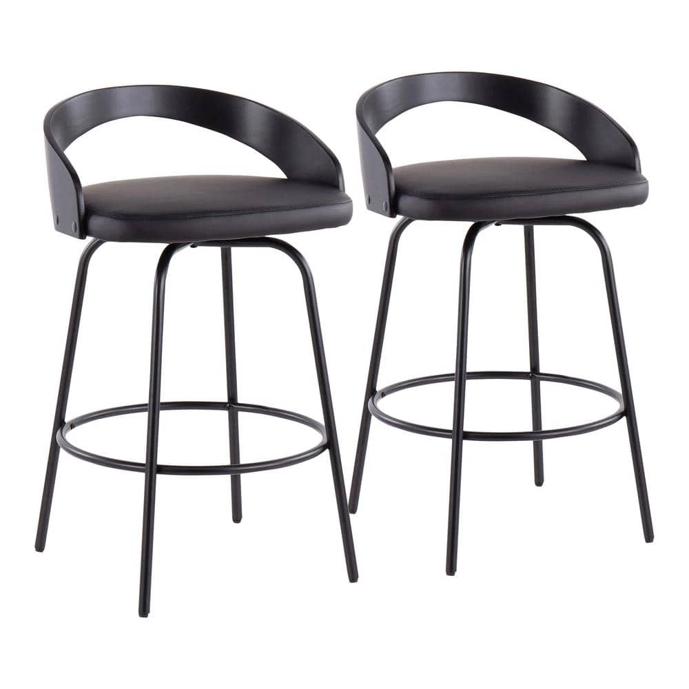 Introducing the Grotto Claire Swivel Counter Stool. With a low curved back and metal rounded legs radiate sophistication while modern features like a faux leather upholstered cushioned seat that swivels and a footrest bring this piece into a contemporary class all of its own. Includes two counter stools.