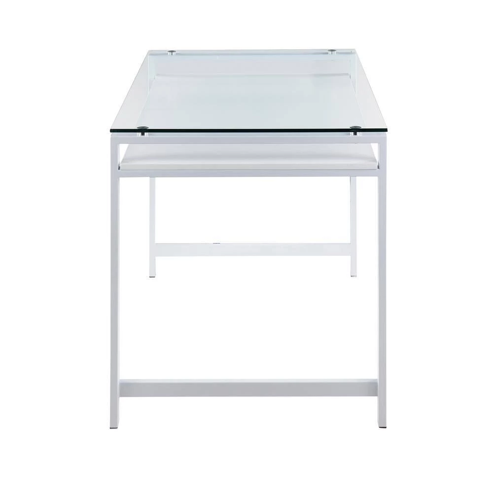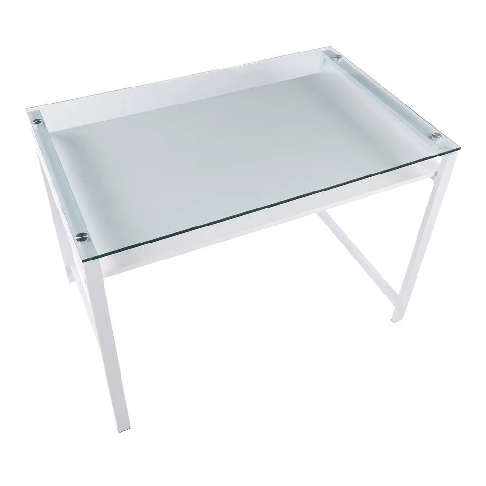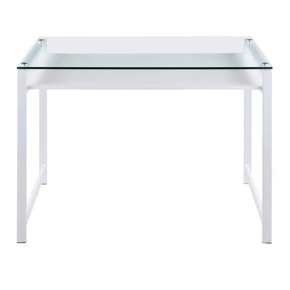 Featuring a gorgeous glass top, floating wood shelf, and metal legs, the Hover Desk by LumiSource will make a beautiful statement in any office setting. The contemporary design of this elegant desk makes it not only functional, but stylish as well. Available in several finishes, choose the one that suits your space best.