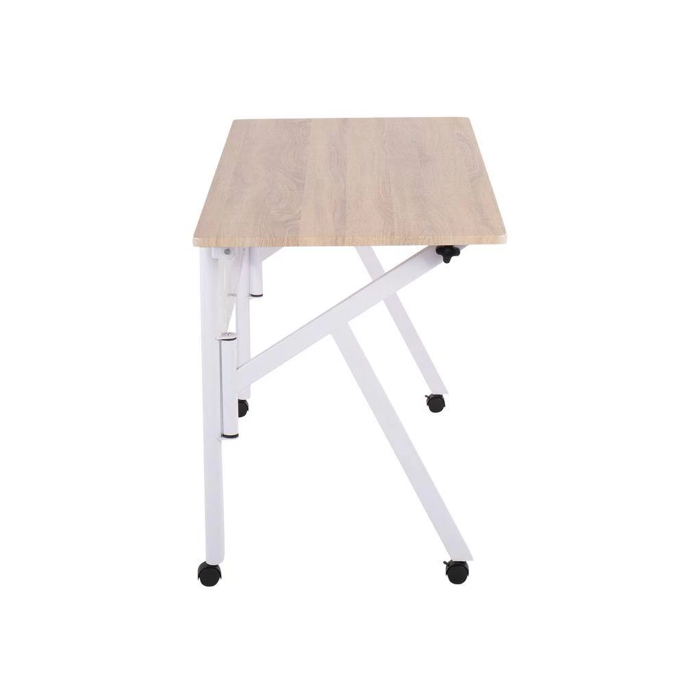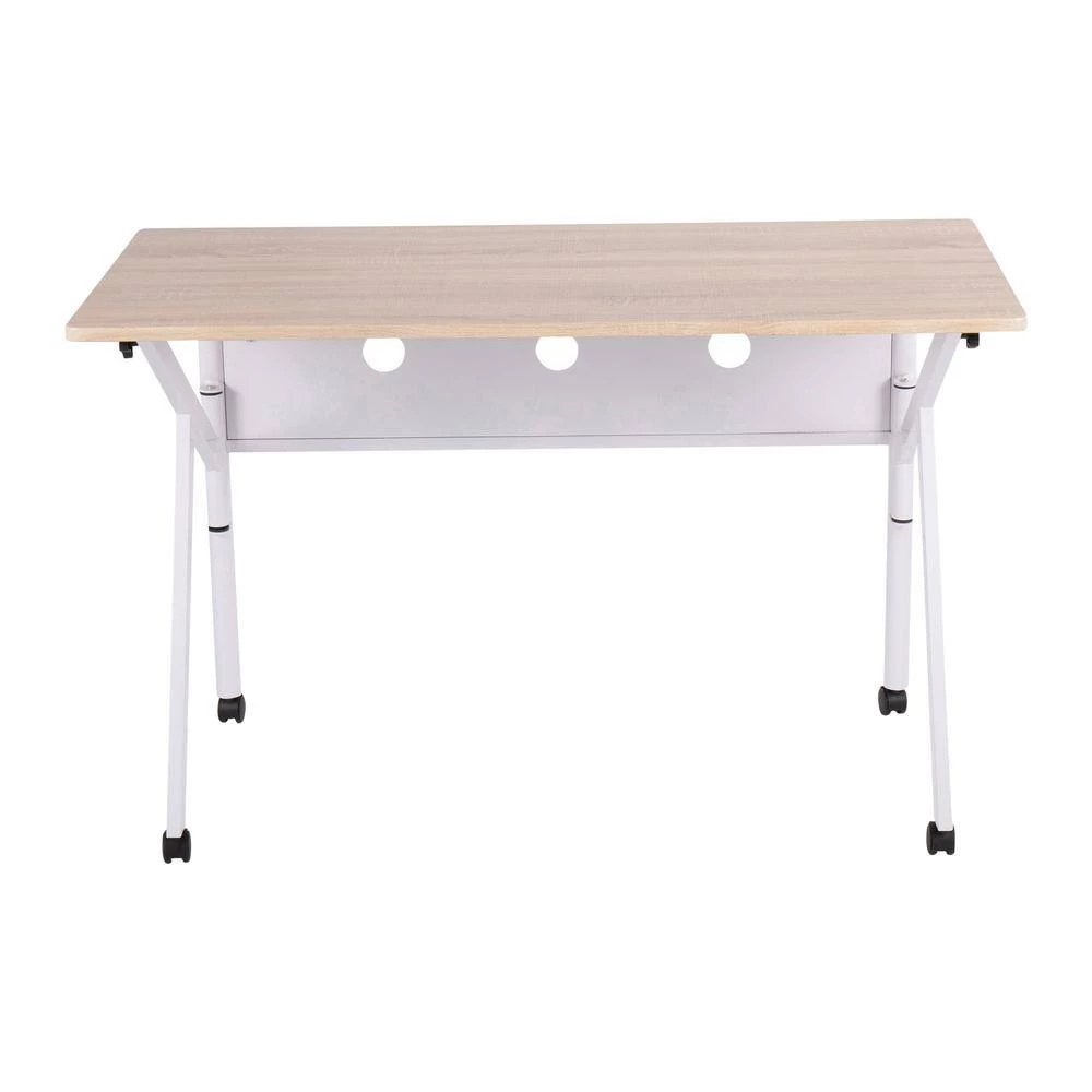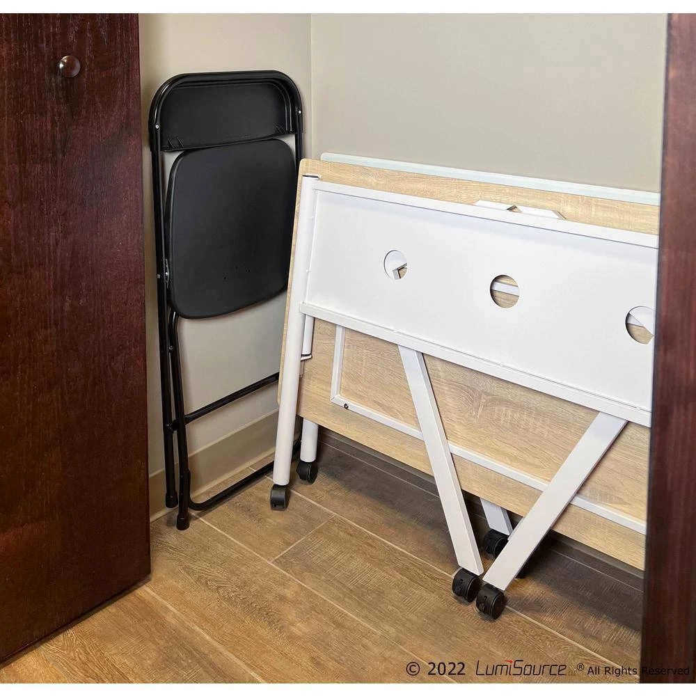 Introducing the K-Fold Desk by LumiSource. You’ll love the versatility and contemporary look of this simple design. The K-Fold Desk features a metal base with four wheels and a sturdy wood top. This desk also has a folding feature for easy storage. Available in a variety of colors, choose the one that suits your space best!