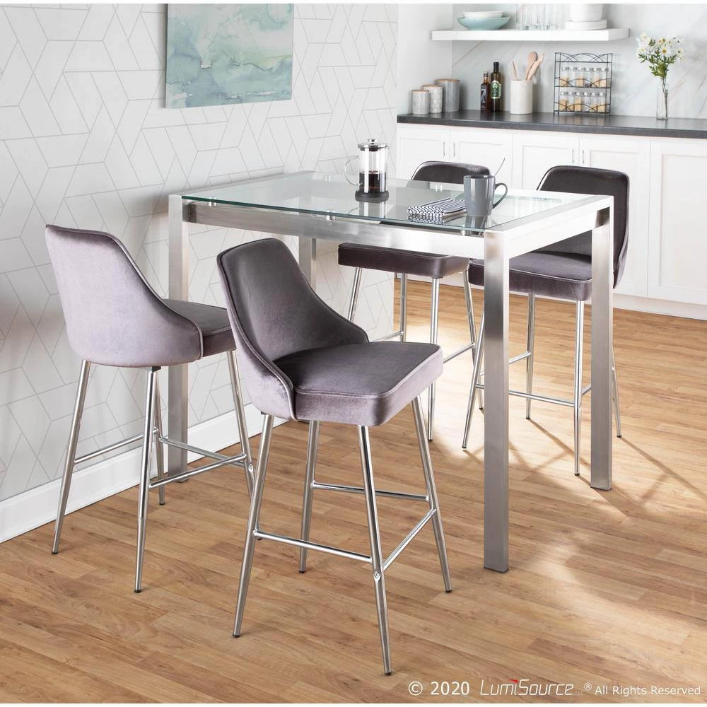 Graceful glam, that’s the Marcel Counter Stool from LumiSource. With its subtly curved silhouette, rich upholstery, and alluring metal legs, this counter stool will add striking style to any bar or counter area. Available in various fabric and leg options. Sold in a set of two.