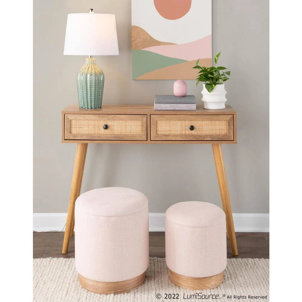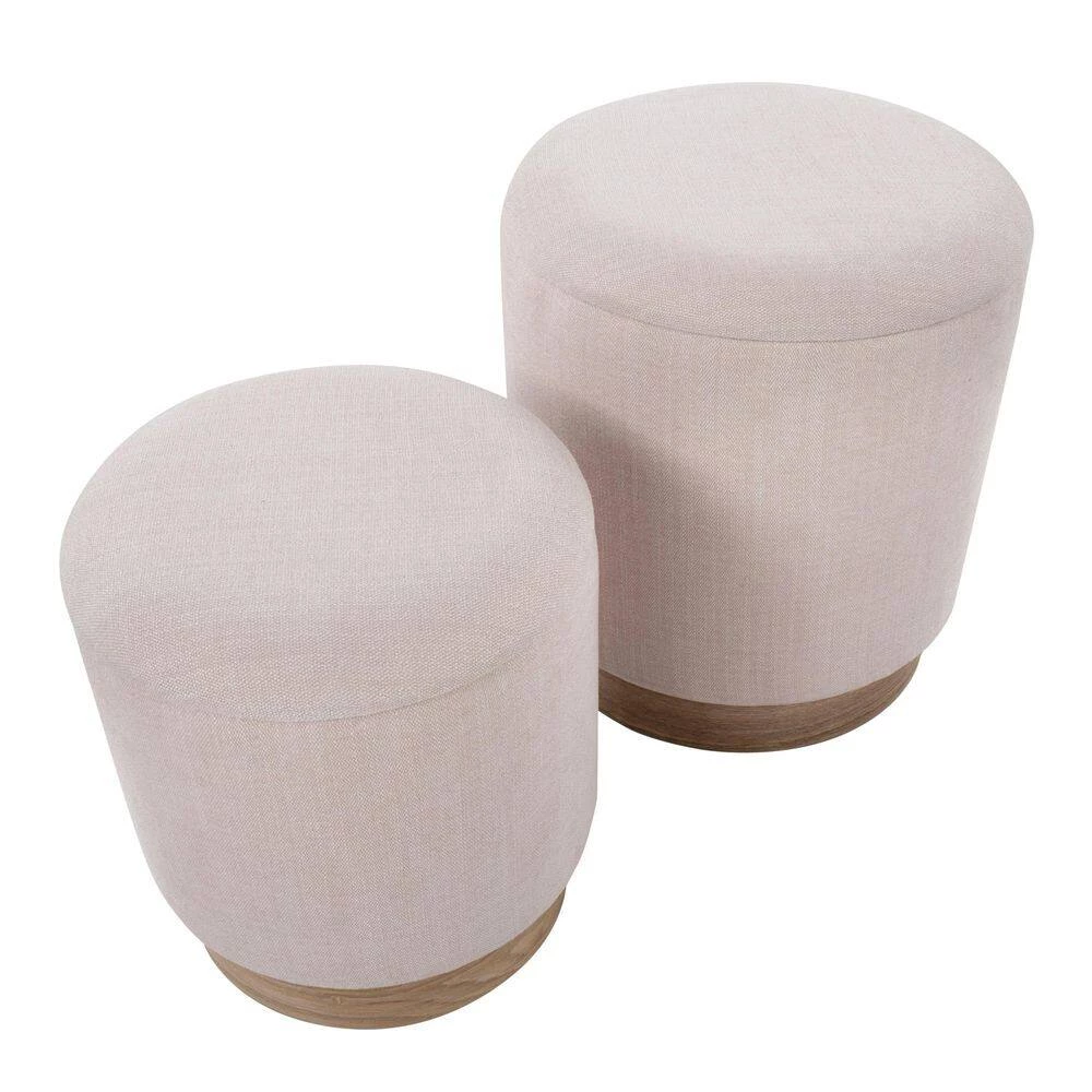 Bring a note of contemporary style to your home with the chic design of the Marla Nesting Ottoman Set by Lumisource. This set features a luxuriously soft cushioned top and natural wood base. The smaller ottoman nests inside the larger ottoman for a space-saving design. Available in a variety of upholstery color options, choose the one that fits your space the best.