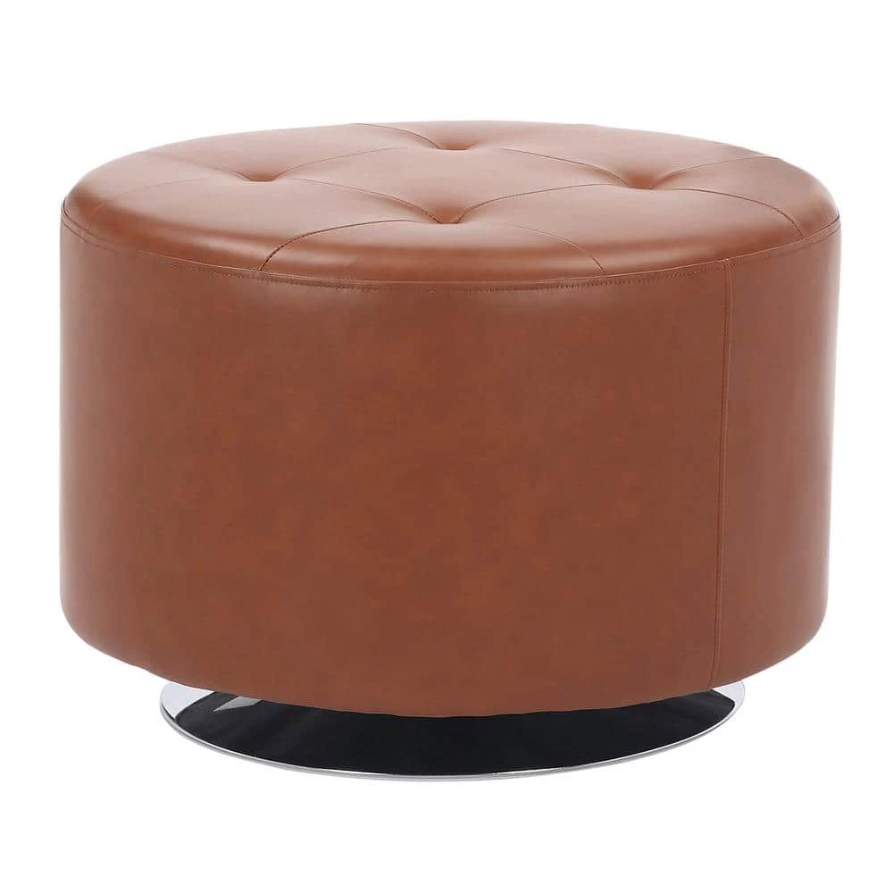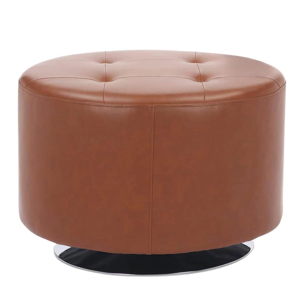 With luxurious upholstery and tufting, the design of the Mason Round Swivel 26 in. Ottoman by Lumisource is stylish and practical. It stands on a high-shine chrome base with a convenient swivel feature. Available in a variety of upholstery options, choose the one that fits your space the best.