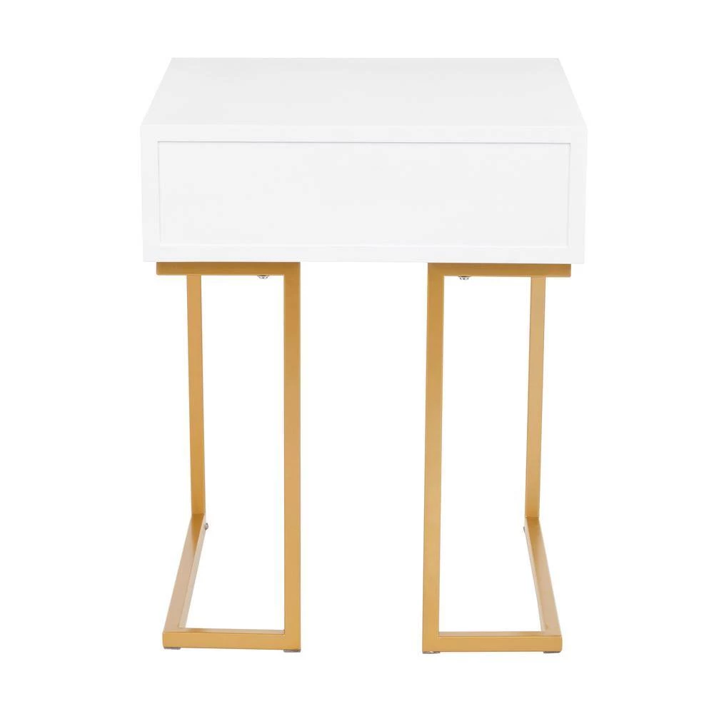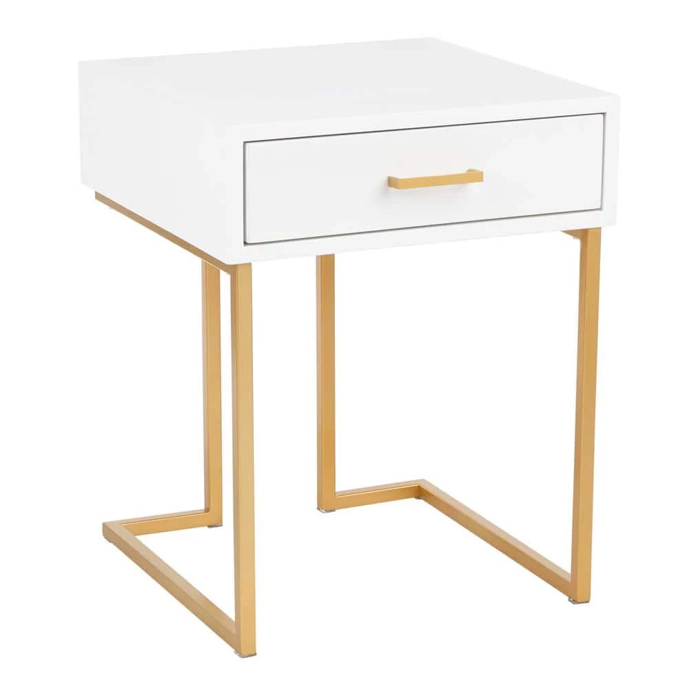 Glamorous and confidently contemporary, that’s the Midas Side Table by Lumisource. Featuring a chunky geometric gold frame and elegant white wood, it’s the optimal piece to slip beside a sofa or next to a bed. The handy drawer hides remote controls, journals, or other small necessities.