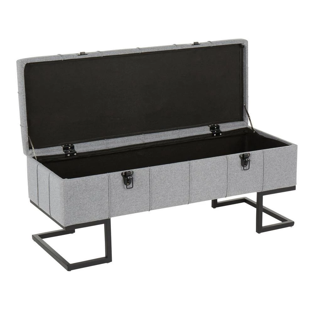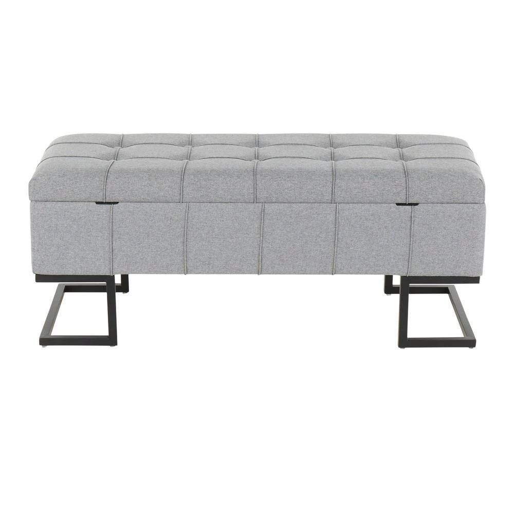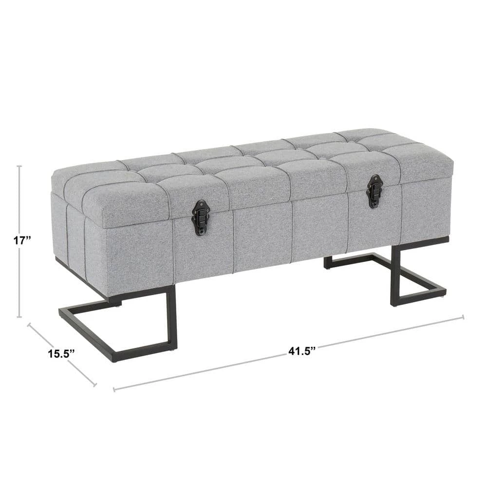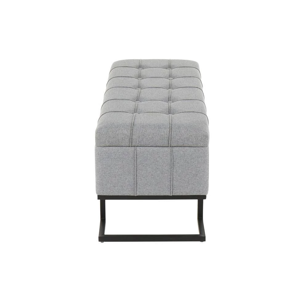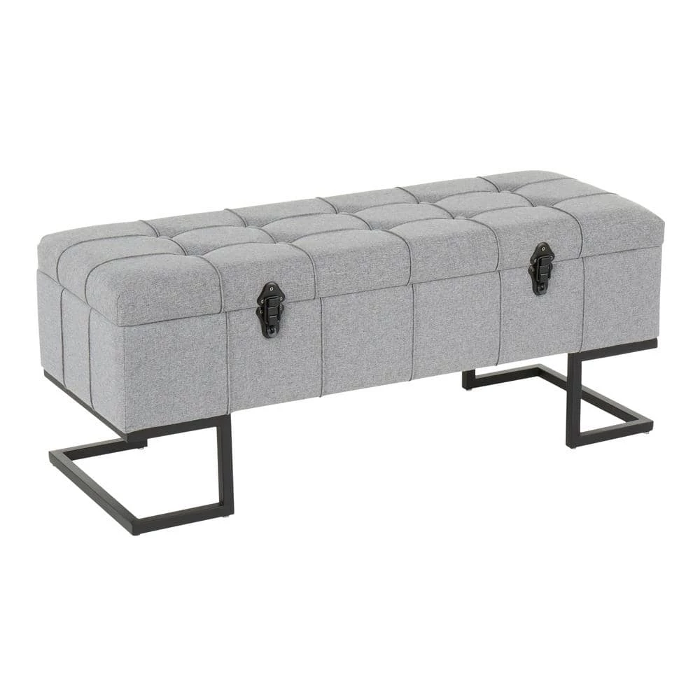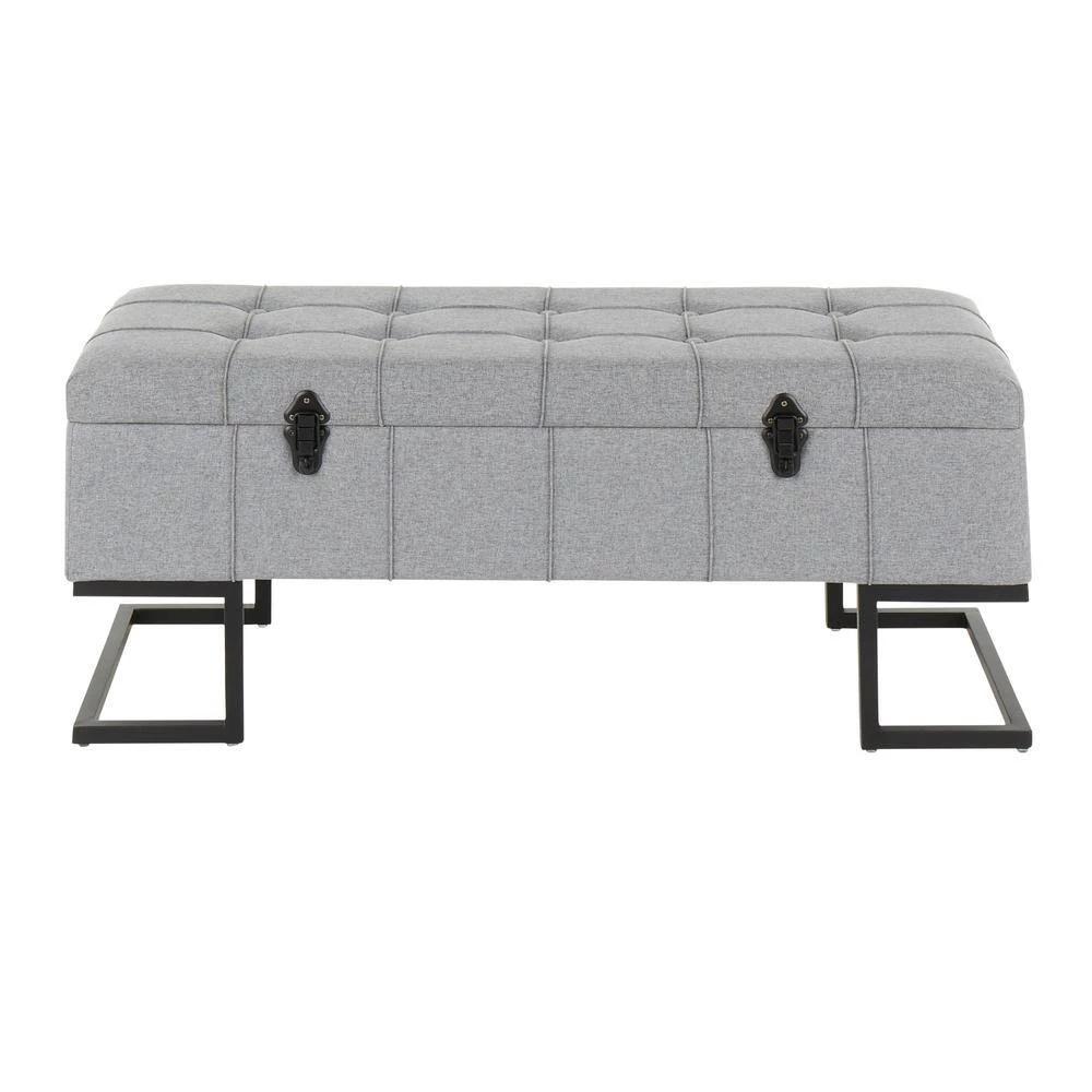 The Midas Storage Bench by LumiSource provides convenient storage along with a stylish look. Perfect for extra seating, an entryway, or at the foot of a bed, the Midas Storage bench features a geometric black frame, sleek button tufted fabric upholstery, and sturdy black metal clasps. Open the flip-top lid to find a roomy storage area where you can conveniently hide magazines, remote controls, and anything else you want to keep out of sight.