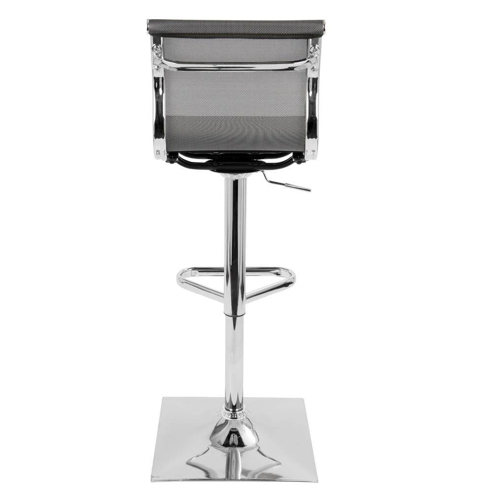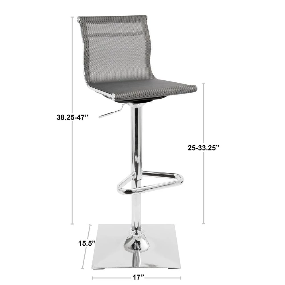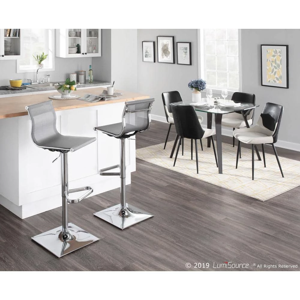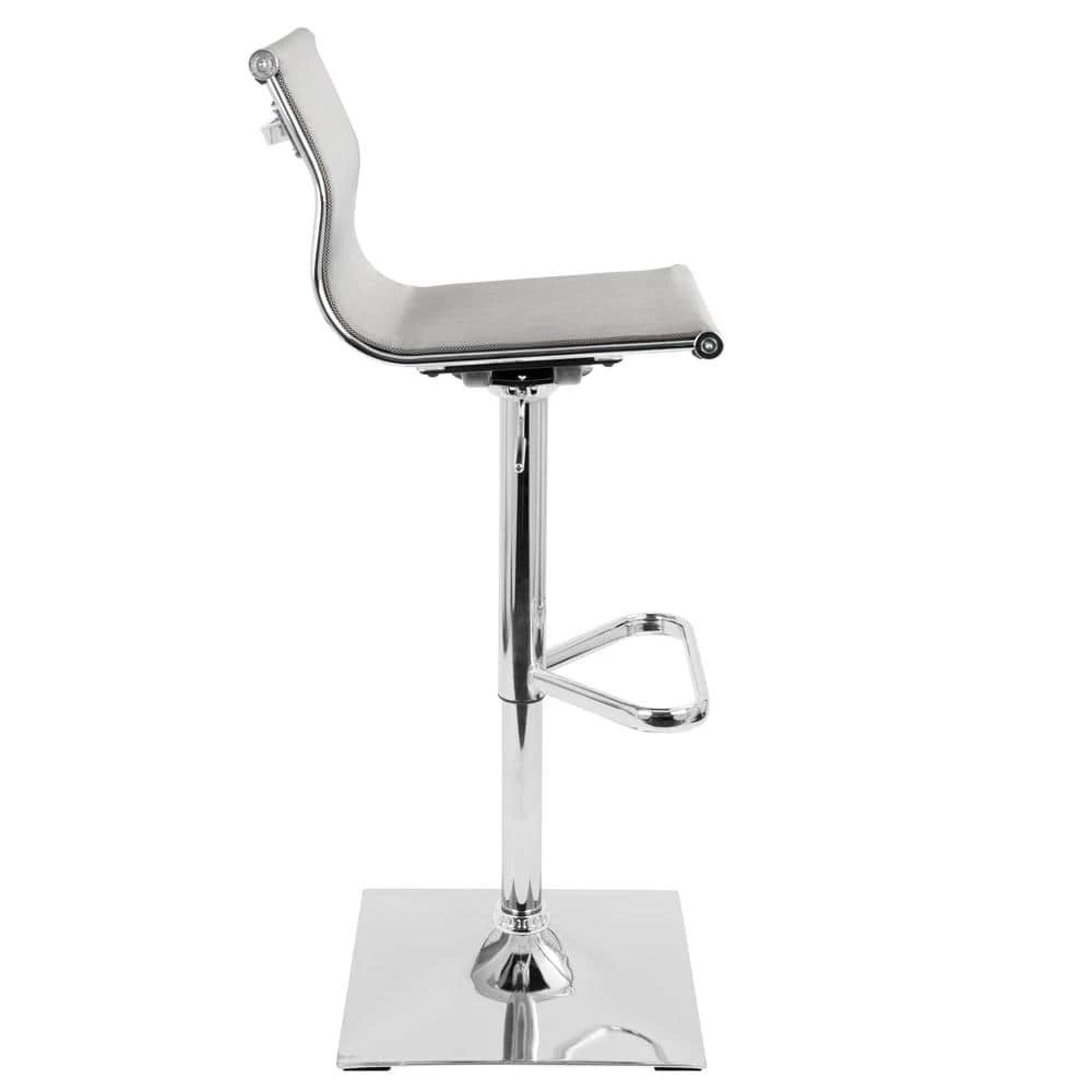 Tie together your bar or kitchen design with the Lumisource Mirage Bar Stool. Designed with a metal frame, this stool can stand up to frequent use, making it perfect for any kitchen or bar. Featuring a modern style, it is great for revamping your current decor. It has a pedestal, which is comprises of a sleek central column and round base. This stool has a swivel mechanism, so you can easily talk to people sitting next to you without needing to move your whole body around. Designed with a full back, it has a chair-like feel yet still maintains the stylish look of a stool. The height is adjustable, allowing you to position the stool comfortably depending on how tall you are. This stool features a foot rest, ensuring a more ergonomic design and promoting good alignment. It has a silver cushion, adding a delicate and simple touch to your home.