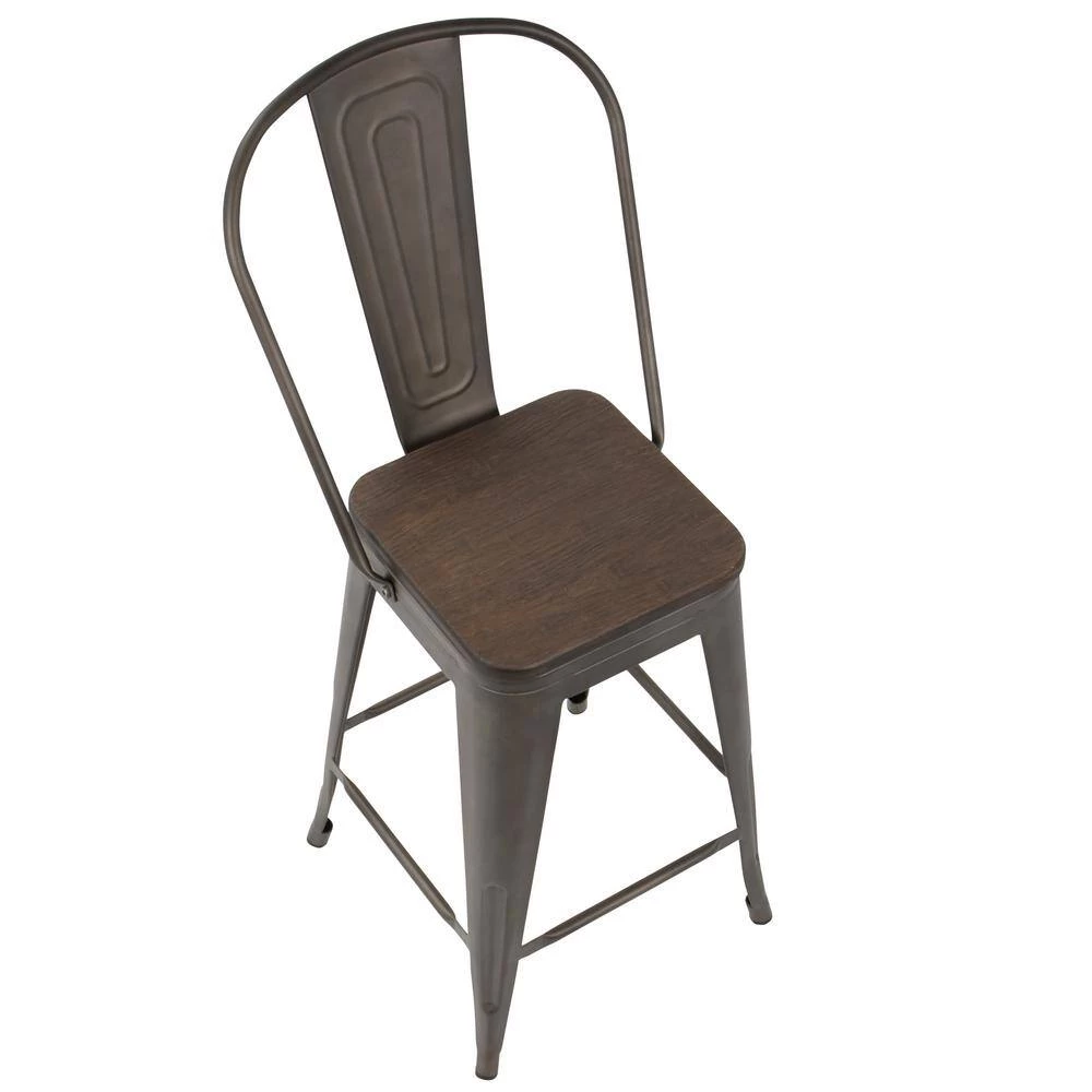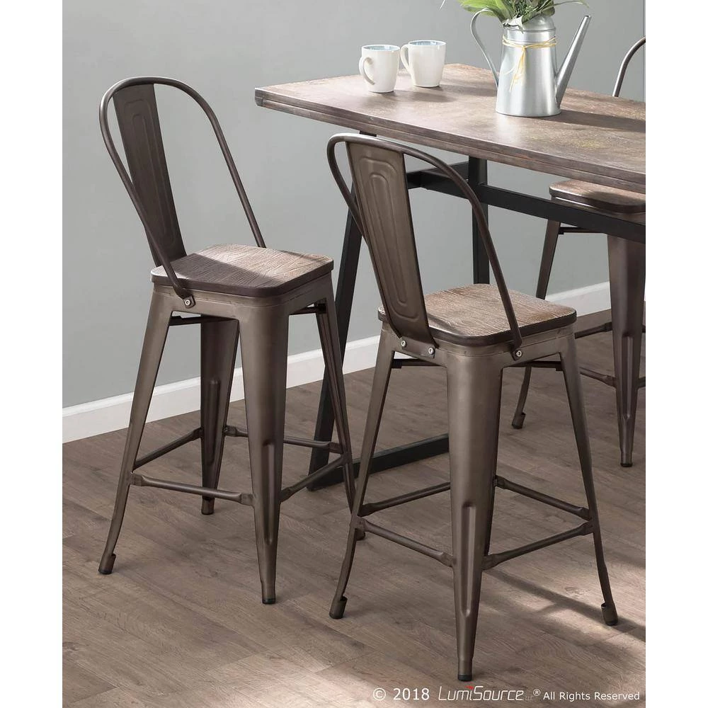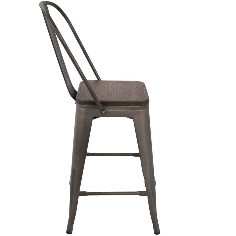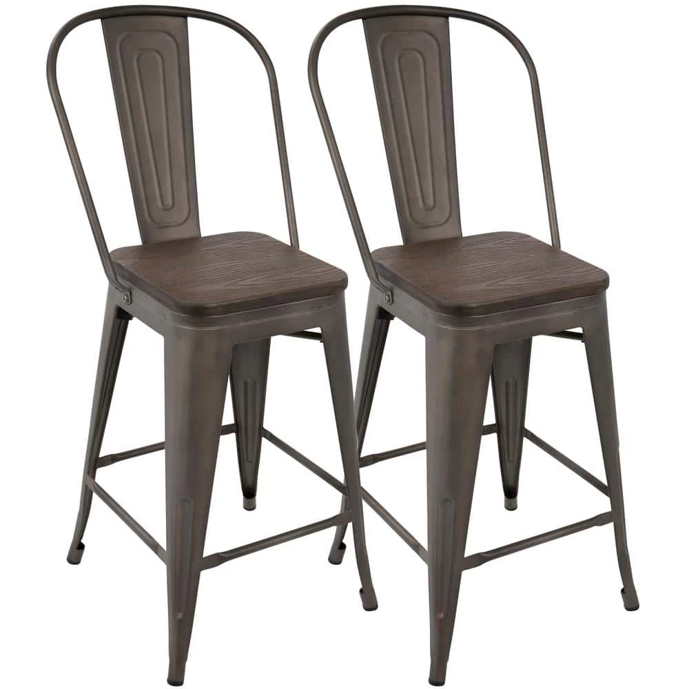 Choose the Lumisource Oregon Bar Stool to upgrade any seating area. This stool has an industrial style, which will instantly update the room. It has an armless design, so you can push it under the table or bar. It features a full back, giving it a chair-like feel but with the stylish appearance of a stool. Designed from metal, the frame can tolerate frequent use, making it perfect for any living space. Made with a wooden seat, this stool looks excellent in pretty much any setting since it has a timeless quality. This brown stool is easy to match with the rest of your home decor. Featuring a strong and sturdy construction, it is a dependable choice for your kitchen decor since it will stay in good condition for a long time. It has a foot rest to help you maintain proper posture while sitting.