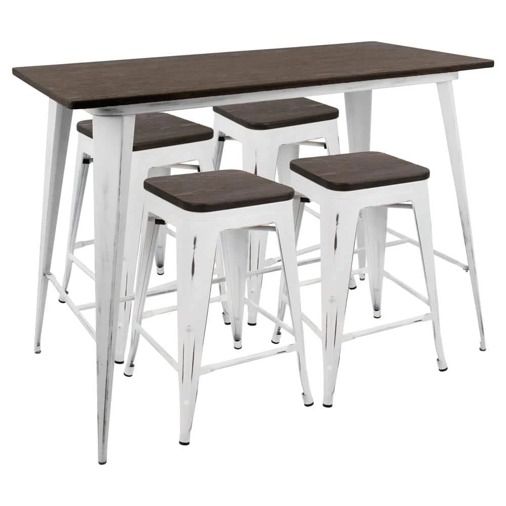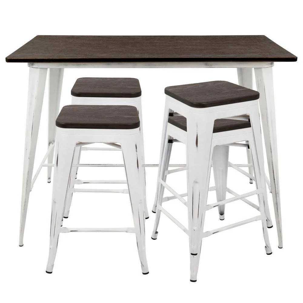 You will love the timeworn charm of the LumiSource Oregon Counter Set. Made with metal and wood, the Oregon Counter Set was designed for style and durability. Includes one table and four counter stools.