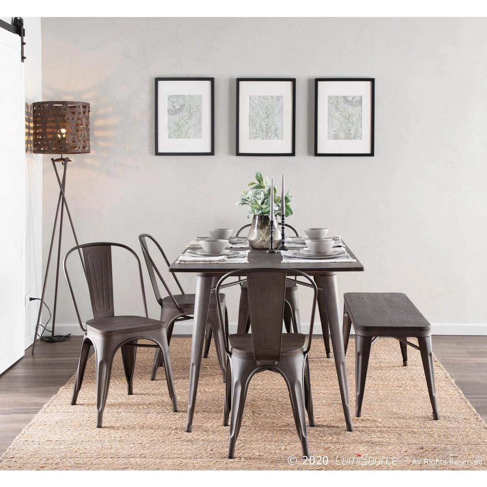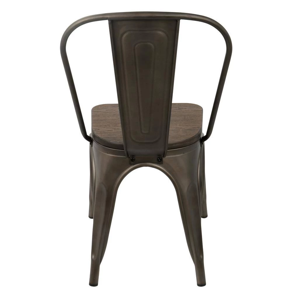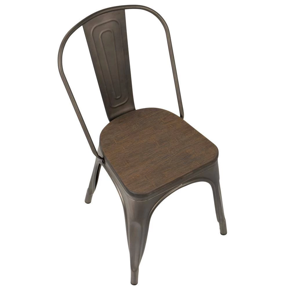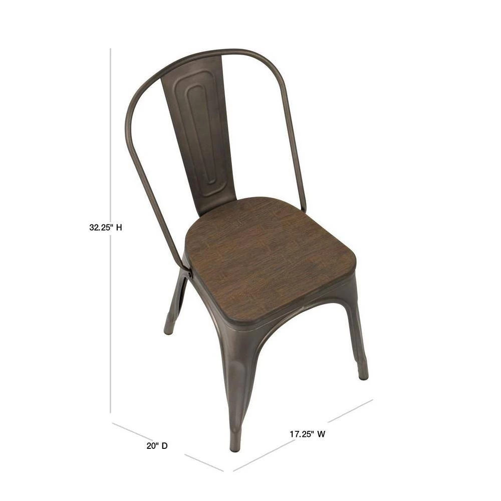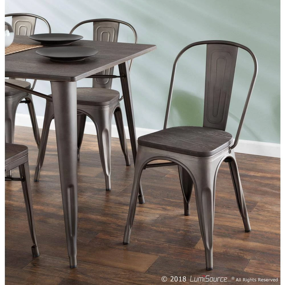 Industrial antiqued finish metal legs and a backrest are juxtaposed with a wood-finished seat to create the epitome of cool in this contemporary dining chair. The wood seat has a Dark Espresso finish. Pair it with the Oregon Dining Table to complete this industrial look.