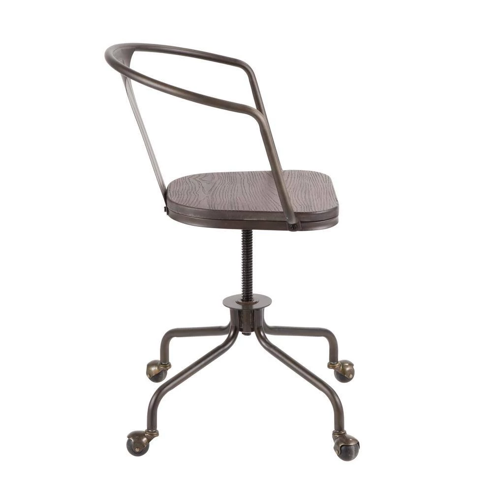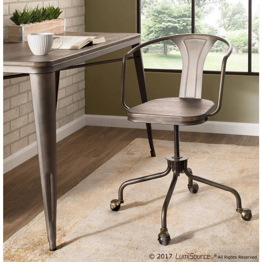 Get to work in the Oregon Task Chair by LumiSource. Industrial inspired, featuring a metal back and armrest, juxtaposed with a wood-finished seat. The Oregon Task Chair is height adjustable and has metal caster wheels for easy mobility. Available in a variety of finishes, pair with the Oregon Utility Table for the ultimate industrial farmhouse look.