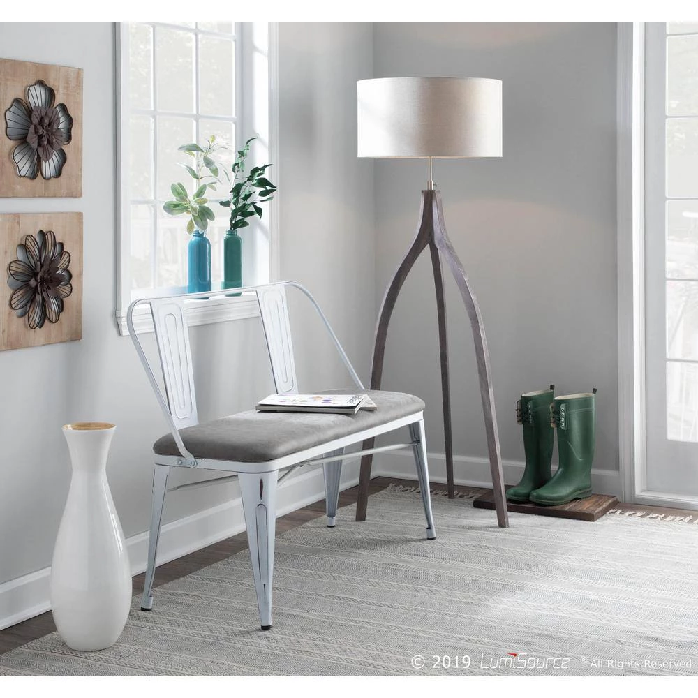 Industrial metal legs are juxtaposed with a sleek suede like upholstered seat to create the epitome of cool in this contemporary dining solution. Pair it with the Oregon Dining Table to complete the look. Includes one bench.