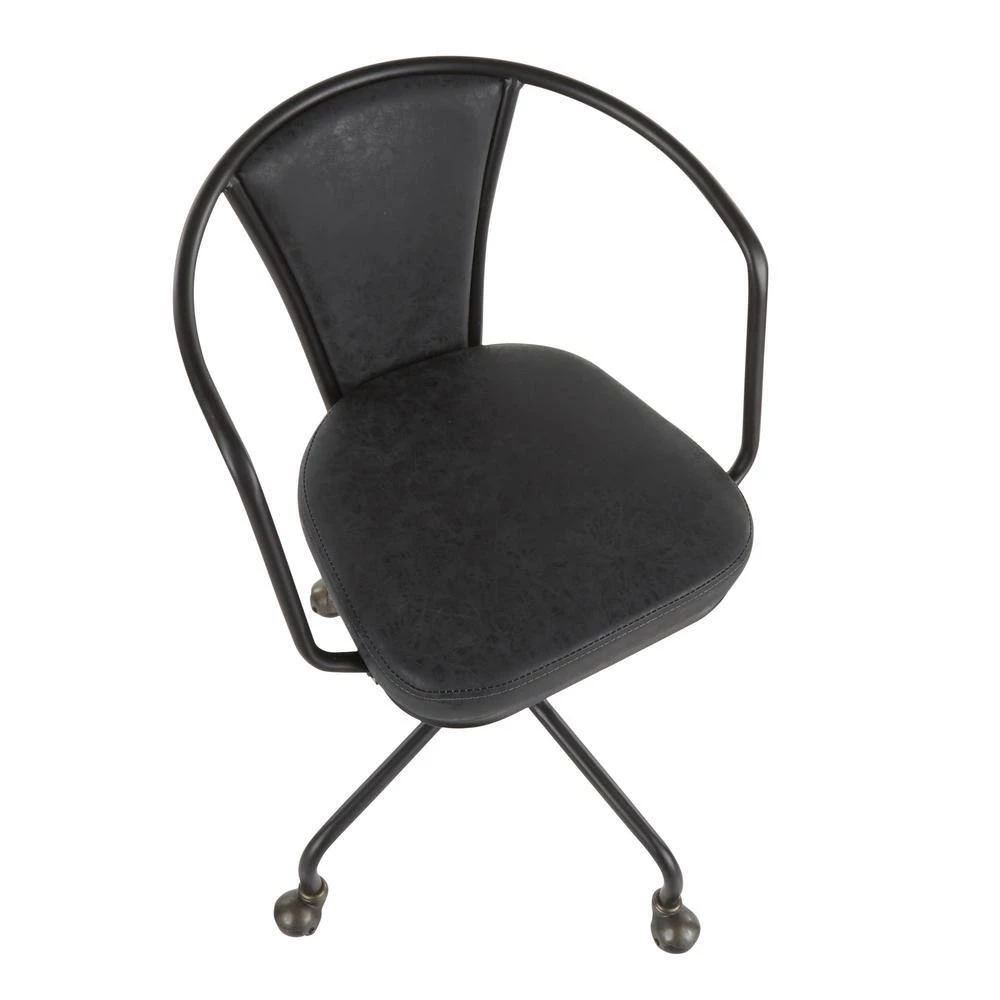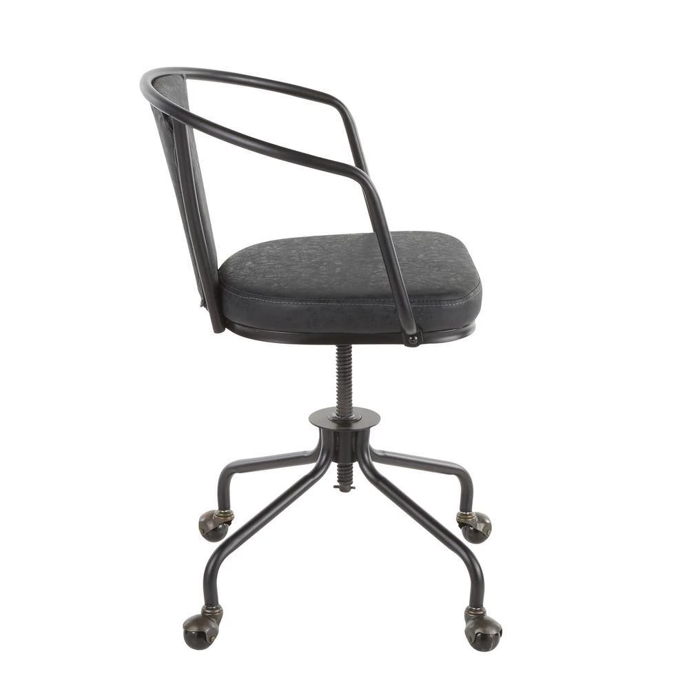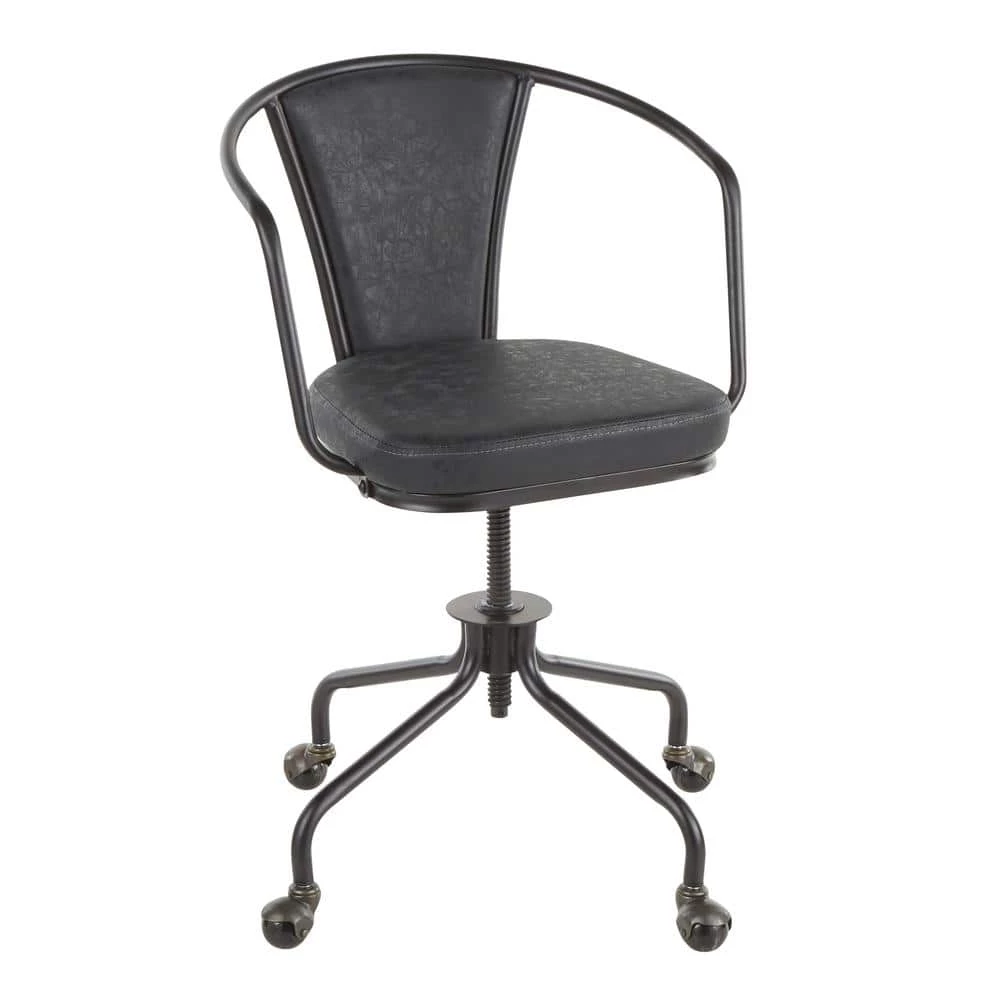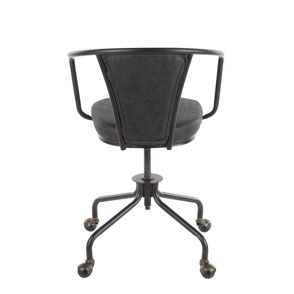 Get to work in the Oregon task chair by Lumisource. Industrial inspired, featuring a metal armrest, juxtaposed with a faux leather upholstered backrest and seat. The Oregon task chair is height adjustable and has metal caster wheels for easy mobility. Available in a variety of finishes, pair with the Oregon utility table for the ultimate industrial farmhouse look.