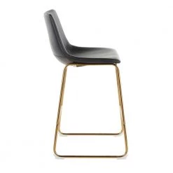 Duke 26 in. Black Faux Leather and Gold Counter Stool (Set of 2) by Lumisource