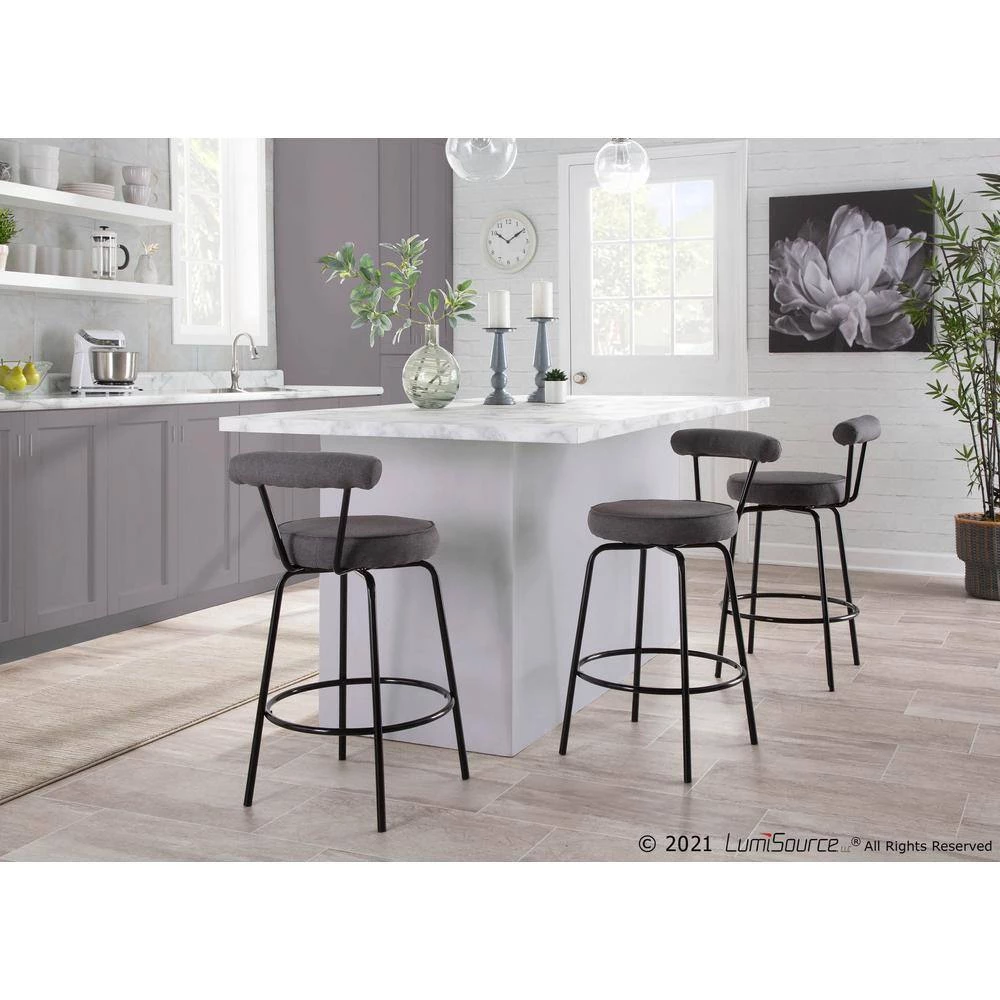 Art deco-inspired, the Rhonda Counter Stool is opulent and striking. The sleek metal frame features tapered legs and a luxe black or chrome finish. A plush fabric upholstery completes the look. Choose from various colors to complement your dining or counter area.