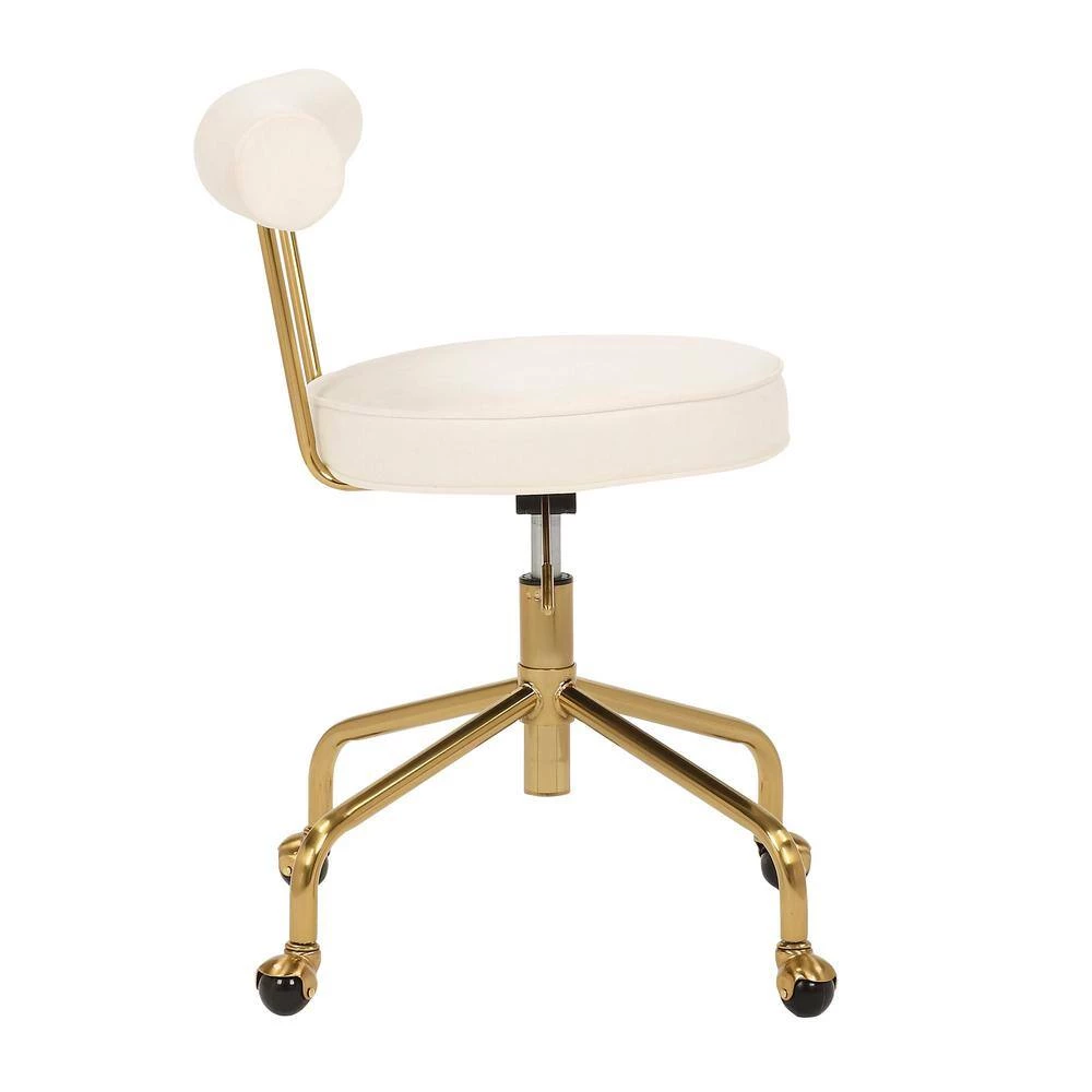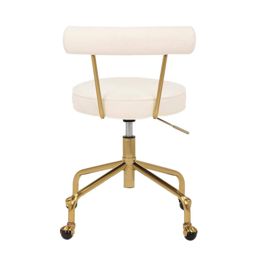Art deco-inspired, the Rhonda Task Chair is opulent and striking. The sleek metal frame features a luxe gold finish and four caster wheels for rolling. A plush velvet upholstery, swivel seat, and adjustable height makes the Rhonda perfect for any office area. Available in various colors, choose the one that suits your space best!