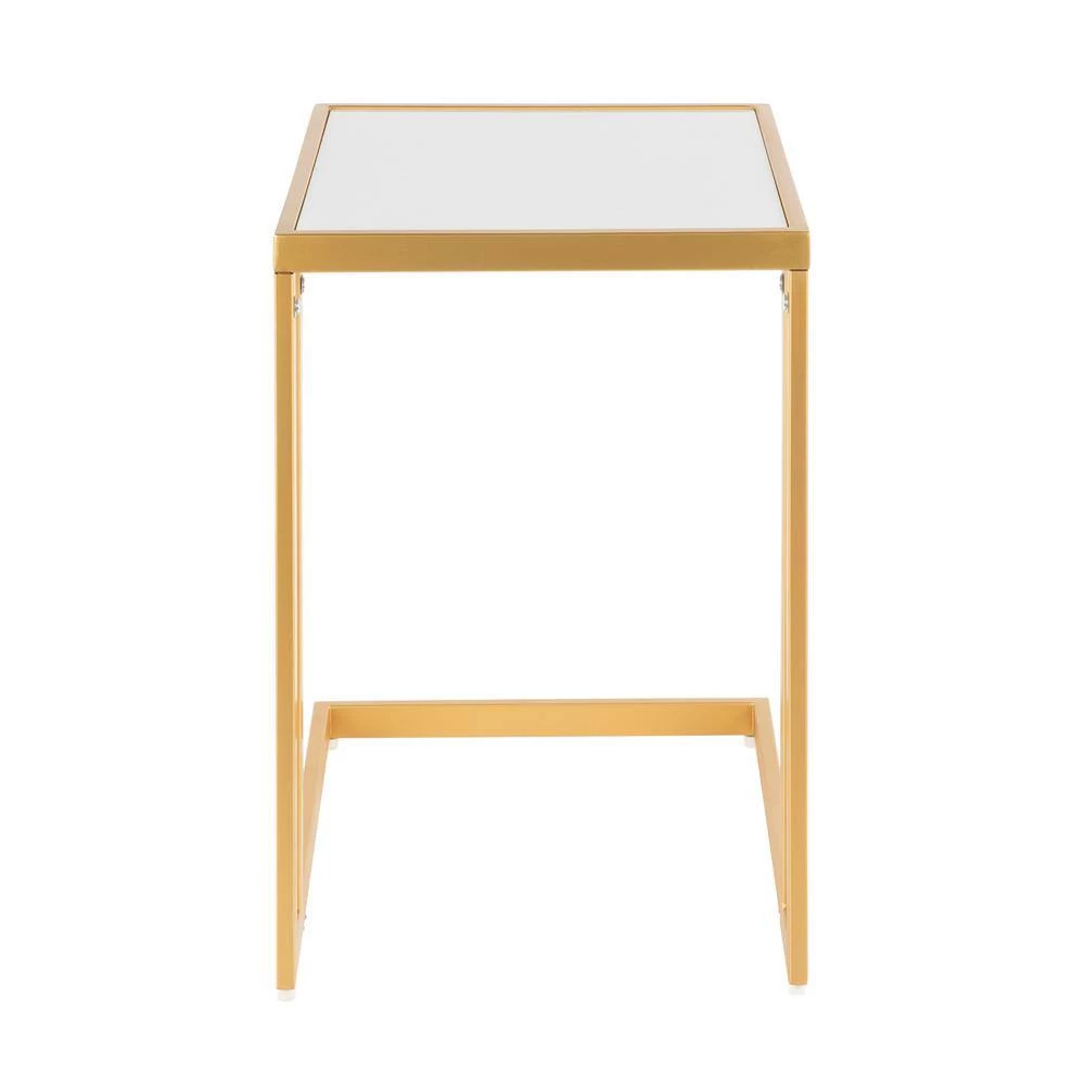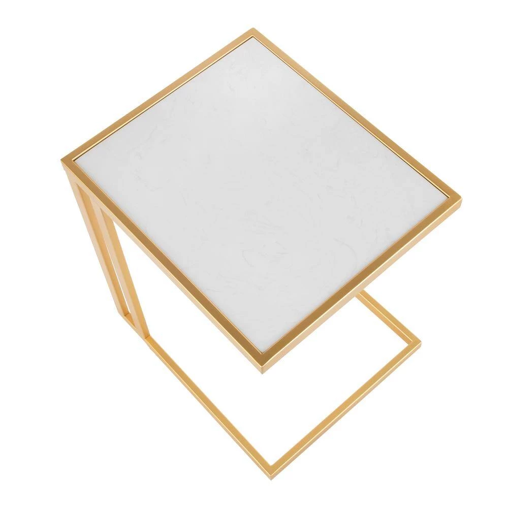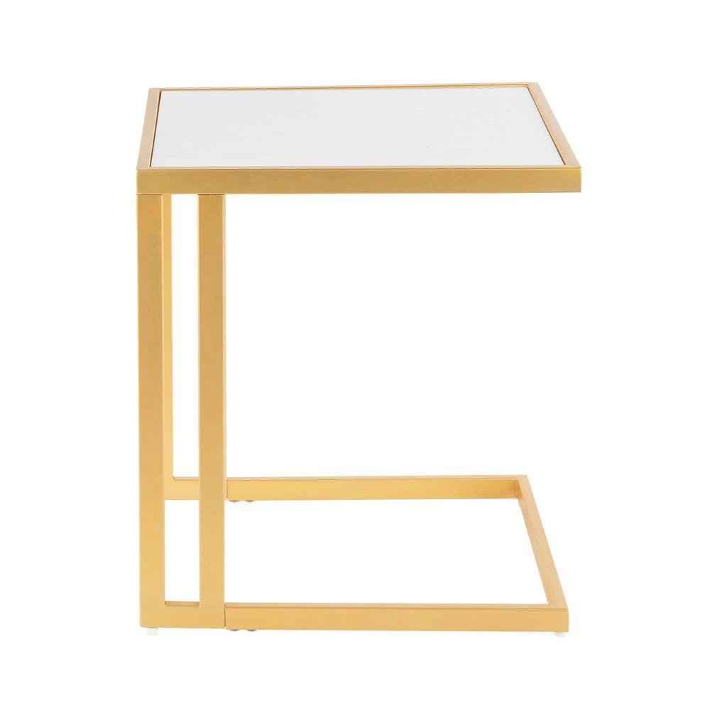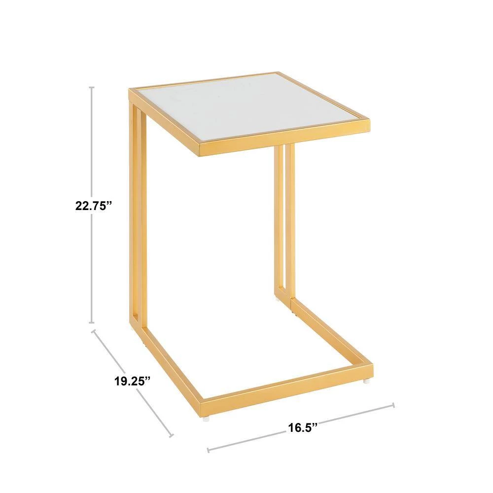 The clean, lines and C-shape of the Roman Side Table make it the optimal piece to slip beside a chair, sofa or next to a bed. The sleek tabletop and frame finishes add a note of trendy, modern and industrial design. Includes one side table.