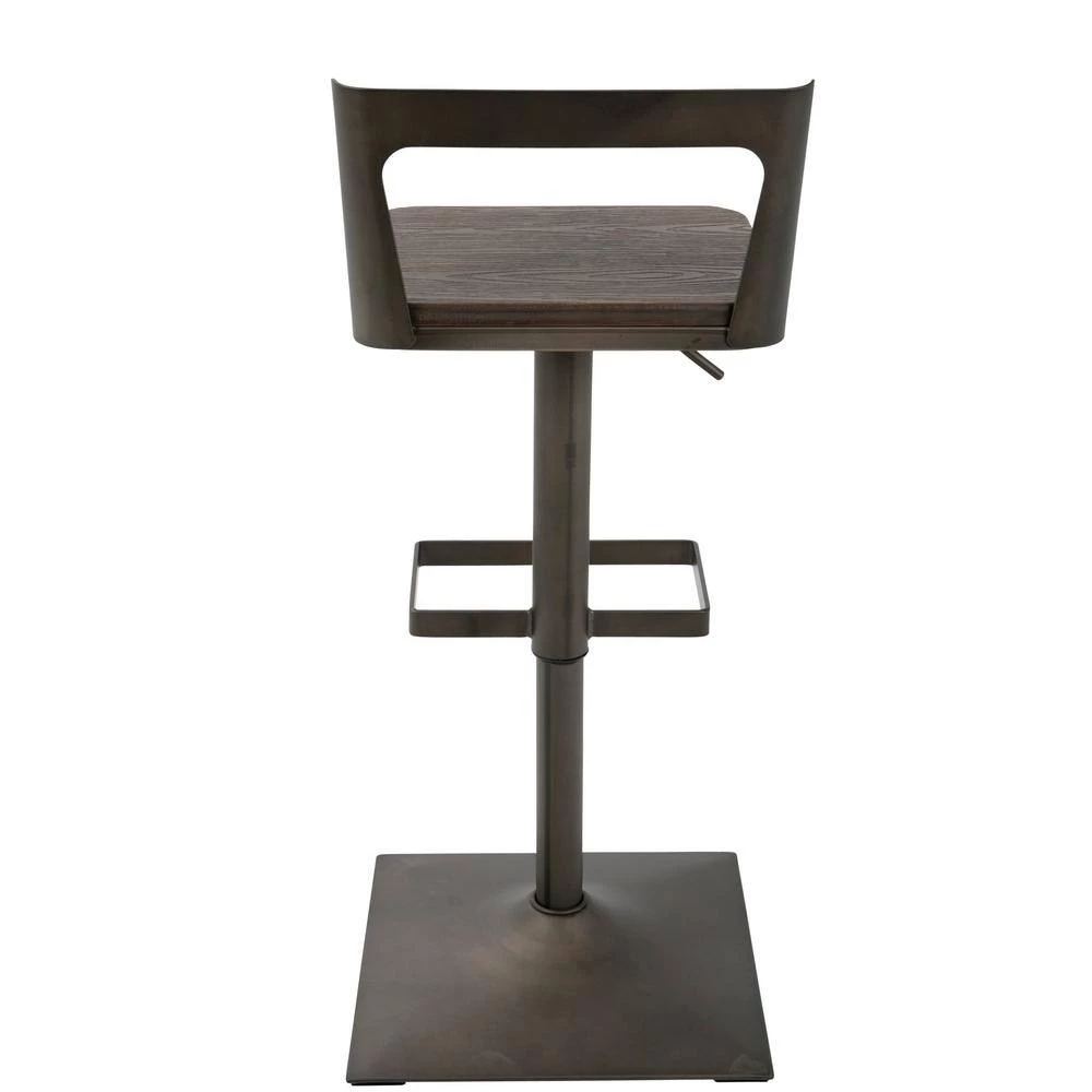 Use the Lumisource Samurai Bar Stool with your kitchen counter for a comfortable place to seat your guests. Made with a wooden seat, this stool is a visually appealing, durable option to add to any home. It has a metal frame, which offers exceptional durability, so it can withstand the test of time. This stool features an industrial style, which will instantly update the room. It features a pedestal, so it can swivel 360 degrees for accessibility and ease of use. This stool has a swivel design, so you can easily interact with other people in the room without moving your chair. It has a full back, giving it the comfortable feel of a dining chair yet still maintaining the look of a stool. This stool has a foot rest, providing you with a place to put your feet while sitting. This black stool is easy to match with your other furniture.