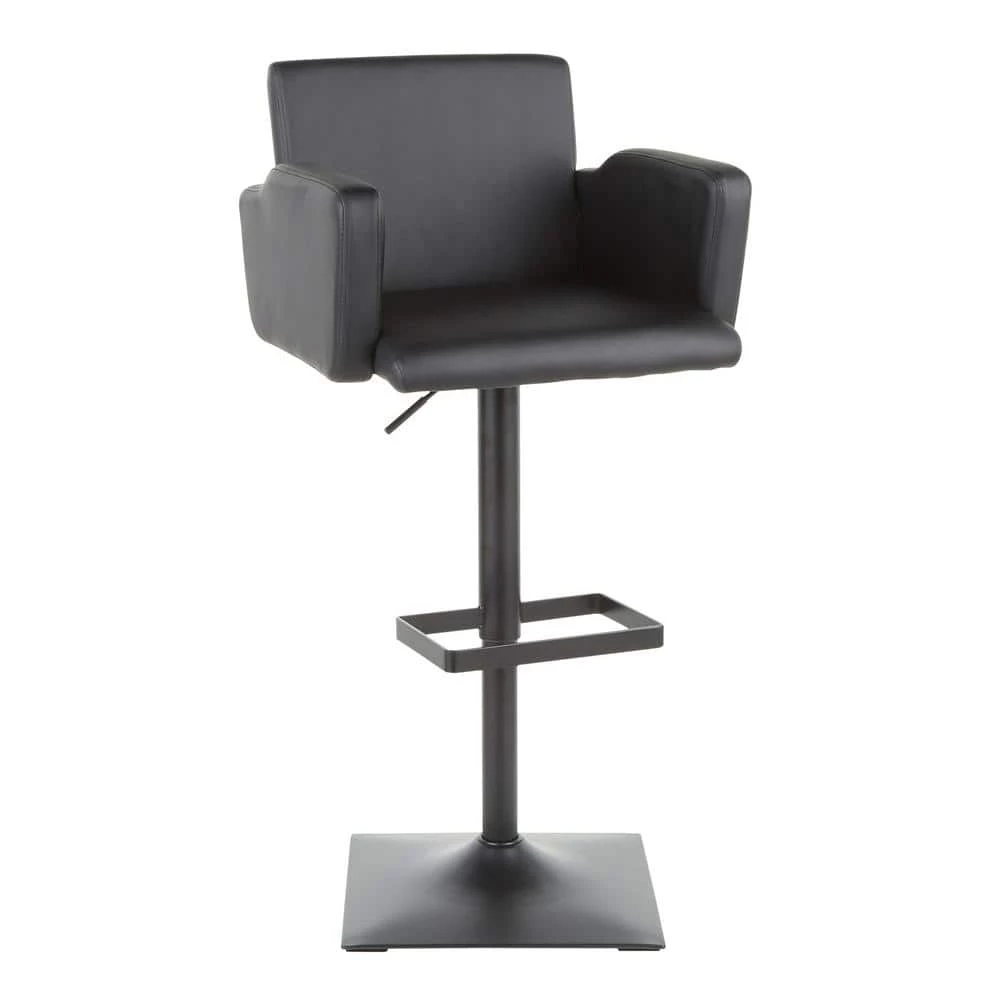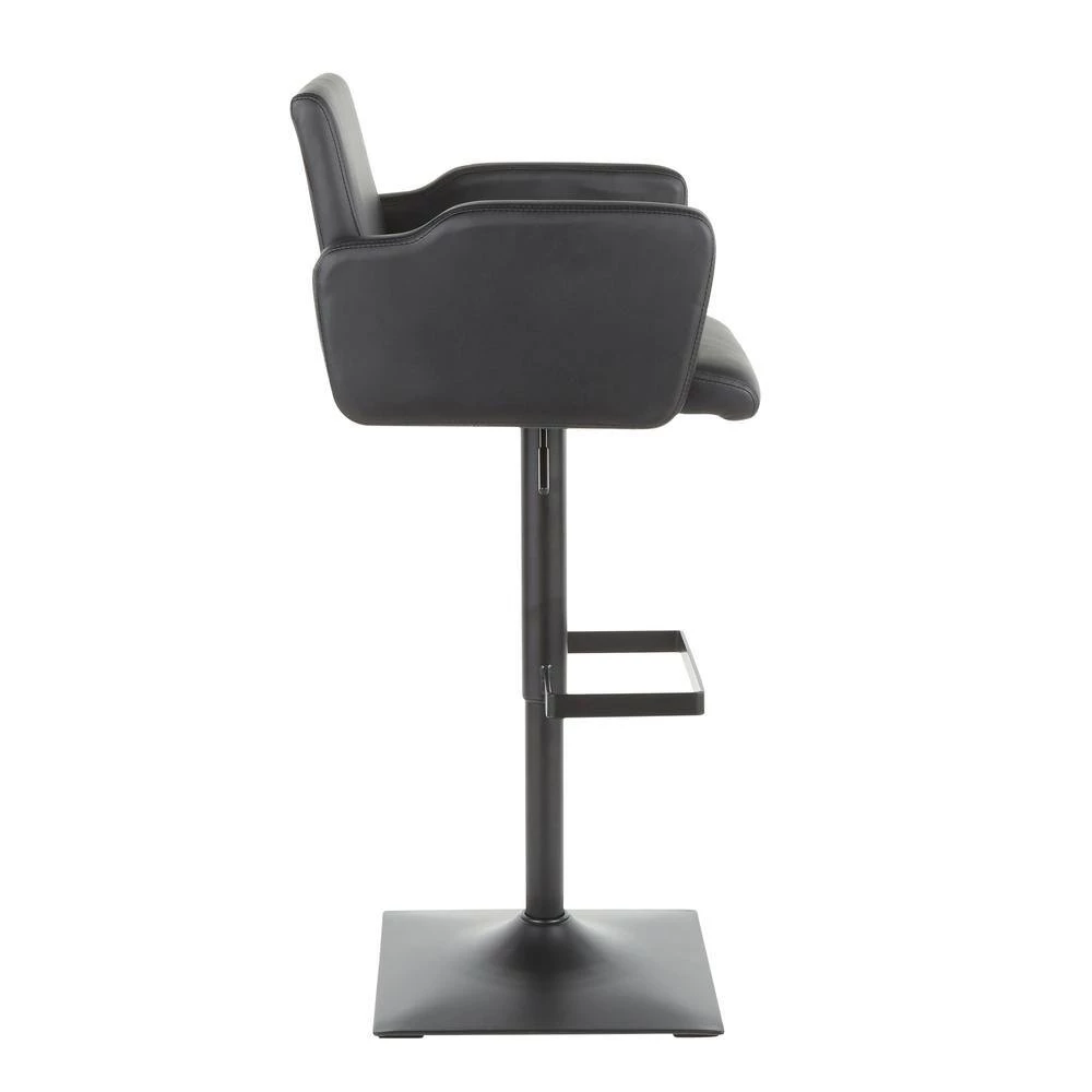 The Sergio Bar Stool was designed with comfort in mind. The padded seat, high back and armrests make this the ultimate stool for relaxation. The Sergio is supported by an adjustable metal base with built-in footrest. Get comfy and look great doing it.