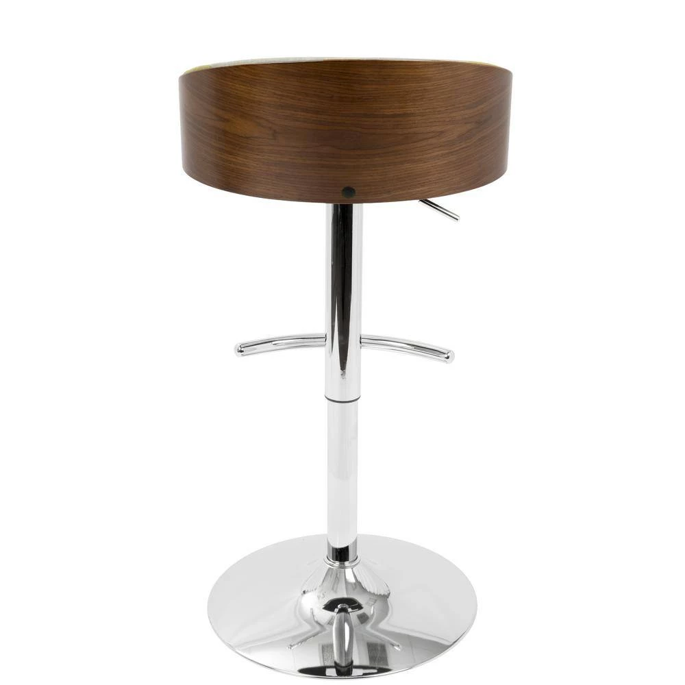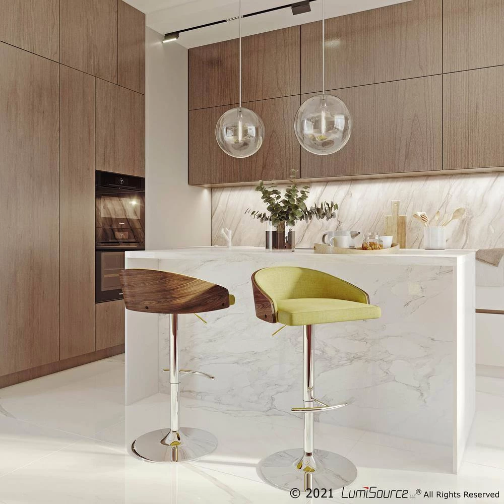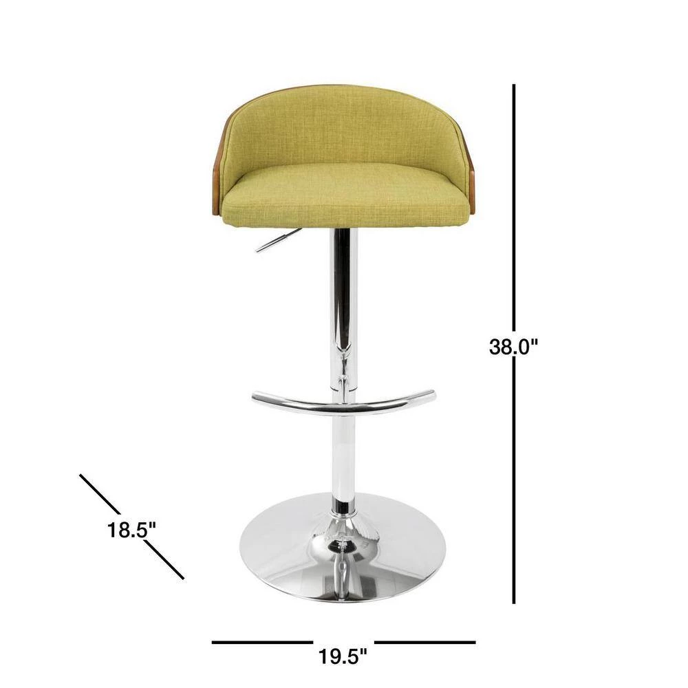Update any space with the Lumisource Shiraz Bar Stool. This stool is designed with a pedestal, so it can spin 360 degrees for optimum use and accessibility. With a mid-century modern style, it showcases the perfect balance between form and function with its sleek, minimalist design. It features a swivel design, so you can easily interact with other people in the room without moving your chair. This stool is designed with a low back, easily sliding completely underneath the counter. Designed from metal, the frame can tolerate frequent use, making it great for any bar or kitchen. The cushion has a shade of green, incorporating a fun and vibrant atmosphere into any room. This stool features a foot rest, so you have a place to comfortably put your feet.