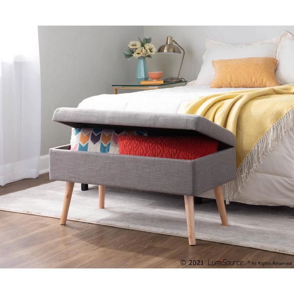 The versatile Storage Bench by LumiSource gives you a stylish and functional storage option. Use this bench as a casual cocktail table, ottoman, or extra seating. Natural solid wood legs, plush padding and fully upholstered in your choice of sleek color options.